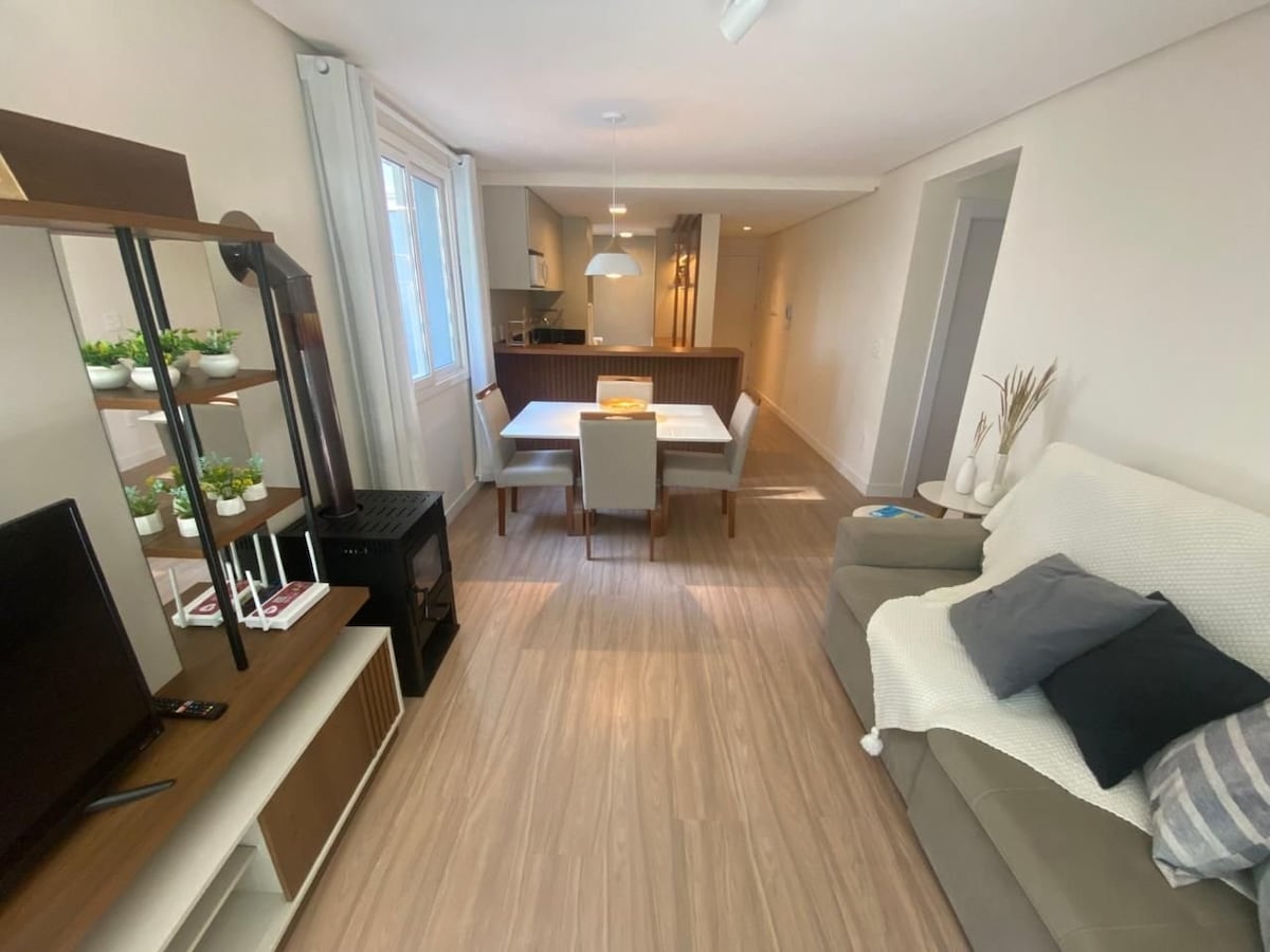 ¡Con la vista más deseada de Canela! Frente a la postal más fotografiada de la Serra, nuestro apartamento te encantará, TV inteligente en la sala, internet, plaza de garaje, suite, toda la ropa de cama y baño, una hermosa chimenea para tomar ese vino en invierno frente a ella. Excelente opción para aquellos que buscan hacer su paseo a pie, la ubicación es incomparable, no necesita un coche para conocer nuestra hermosa ciudad. Venga a alojarse con nosotros.