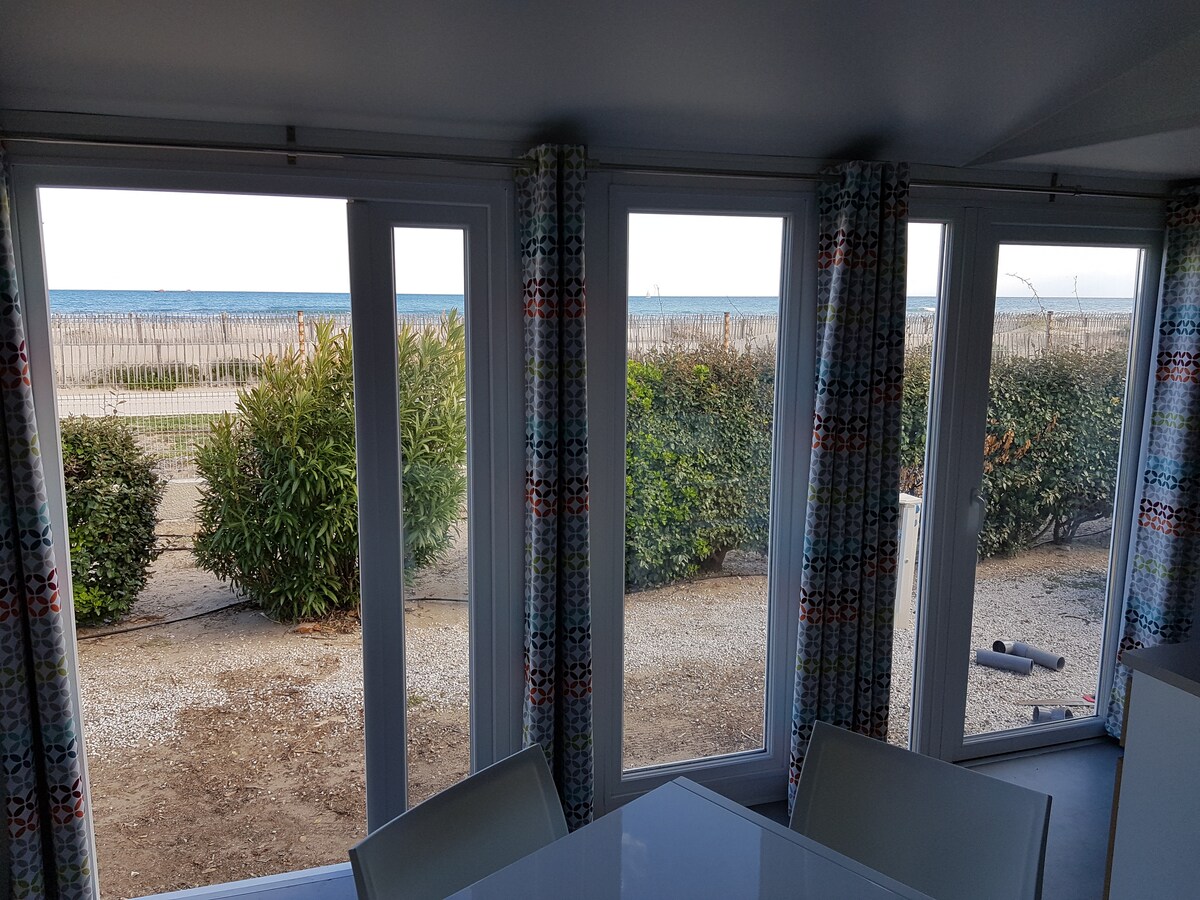 Casa móvil para 6 personas en el pueblo de vacaciones Siblu. Les Sables du Midi 34350 Valras plage. Camping 4 *. La casa móvil está equipada con aire acondicionado reversible, 3 dormitorios , una sala de estar con un sofá esquinero, TV de pantalla plana, horno, vitrocerámica de 4 fuegos de gas, microondas, cafetera tassimo, una gran nevera con congelador, baño con inodoro separado y una gran terraza con una plaza para el coche Tarifa y disponibilidad a partir del 1 de abril de 2025 mínimo dos noches.