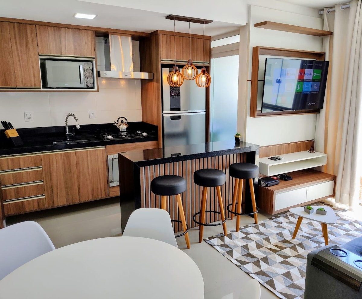 Loft novinho no bairro Navegantes, Capão da Canoa, com ar condicionado quente e frio, internet , cozinha equipada, com taças, air fryer, micro-ondas, churrasqueira. Cama confortável e iluminação aconchegante. Roupas de cama e toalhas de qualidade. Espaço para home-office. Edifício com rooftop com piscina, academia, pista de corrida, espaço kids. Conta com uma vaga de garagem. Perfeito para uma estadia relaxante e prática. Próximo à praia, no bairro mais nobre da cidade!