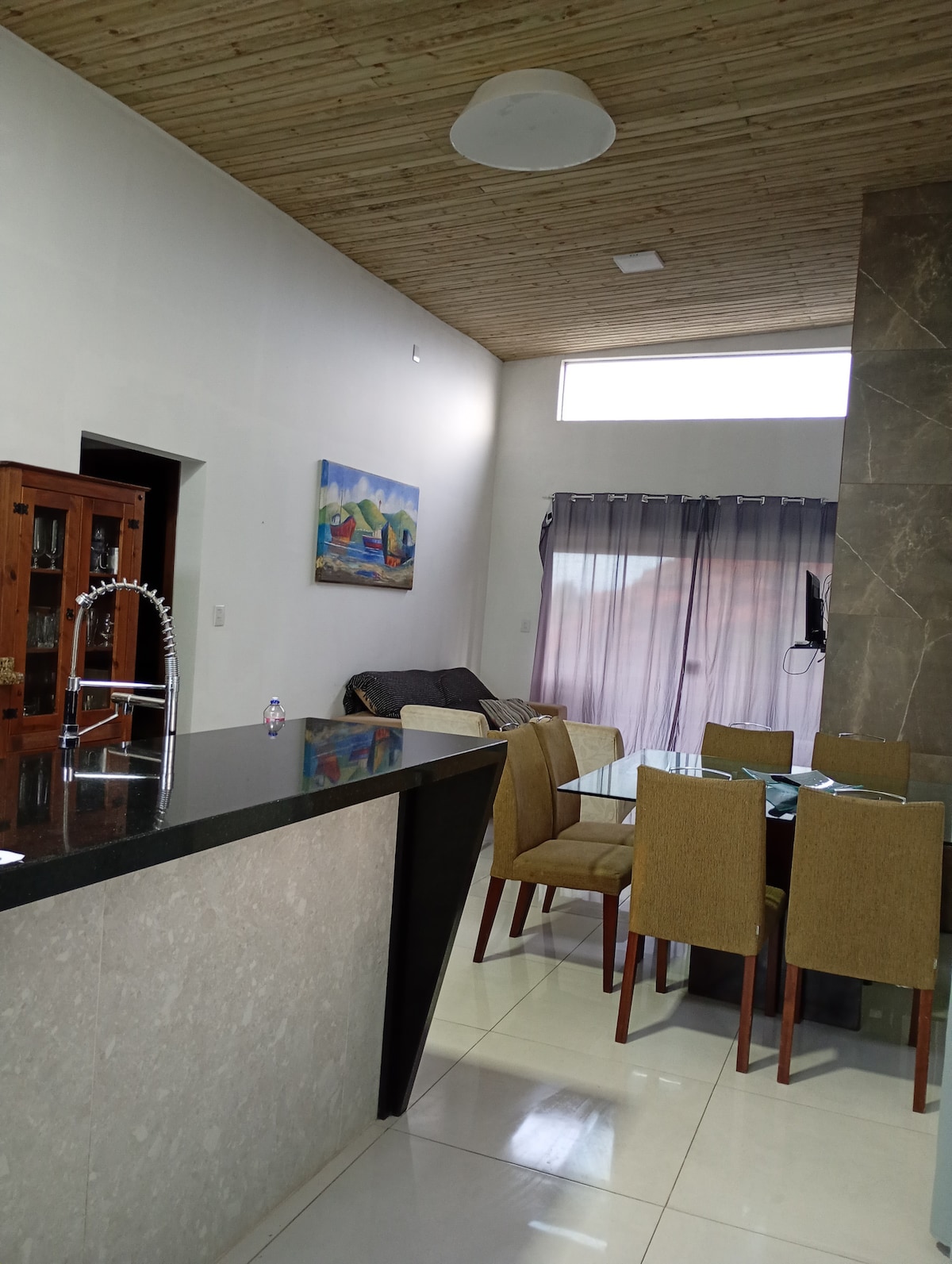 ¡Refugio acogedor en invierno y verano! Casa amplia de una sola planta, a 5 minutos caminando de la playa, con chimenea y aire acondicionado para mayor confort en todas las estaciones. Cuenta con 3 dormitorios (1 en suite), sala integrada y espacio gourmet con parrilla. Wi-Fi de fibra, garaje y patio cerrado, pet friendly, con pequeña huerta. Piscina y quincho disponibles. Ubicación tranquila, cerca de mercados y restaurantes. Ideal para descansar, caminar y disfrutar del litoral todo el año.