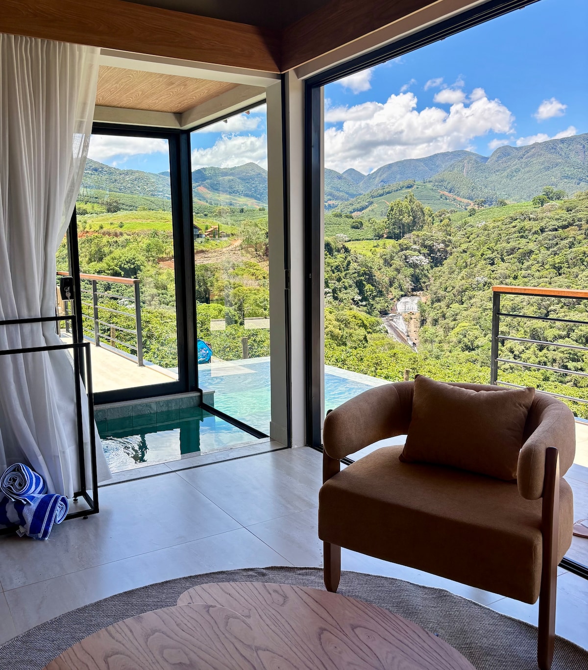Reconecte-se à natureza neste lugar inesquecível, que garante conforto e exclusividade. Piscina de borda infinita aquecida, com acesso pelo quarto. Localizado entre as montanhas do Caparaó, o chalé oferece uma vista exclusiva e totalmente privativa da Pedra Menina, de toda a cordilheira ao redor e da Cachoeira do Chiador (com acesso exclusivo). Cozinha completa. Disponibilizamos de enxoval completo. Cama queen. Produtos para cabelo em parceria com Lahory. Ambiente seguro e privativo.