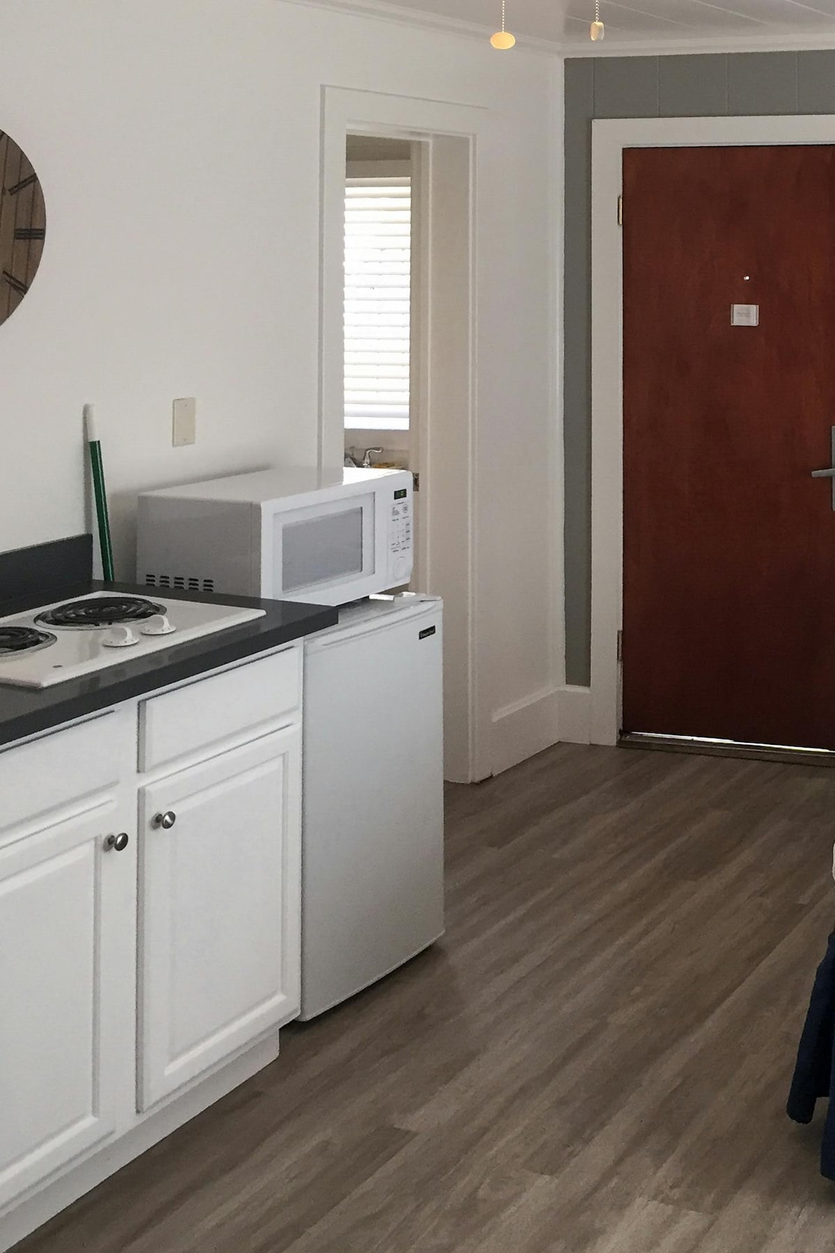 Nuestra suite estudio sin vista es el refugio perfecto. Ofrece una acogedora cama tamaño queen para una estadía tranquila. Prepara comidas en una zona de cocina. Un baño privado ofrece una ducha, artículos de tocador de cortesía, toallas limpias y un secador de pelo. Esta habitación está cerca de la calle, por lo que es posible que haya un poco de ruido en la carretera. Sus servicios incluyen cocina, nevera, cafetera en la habitación, internet de alta velocidad gratuito, TV por cable, teléfonos con buzón de voz, secador de pelo y estacionamiento fuera de la calle (un espacio al costo).