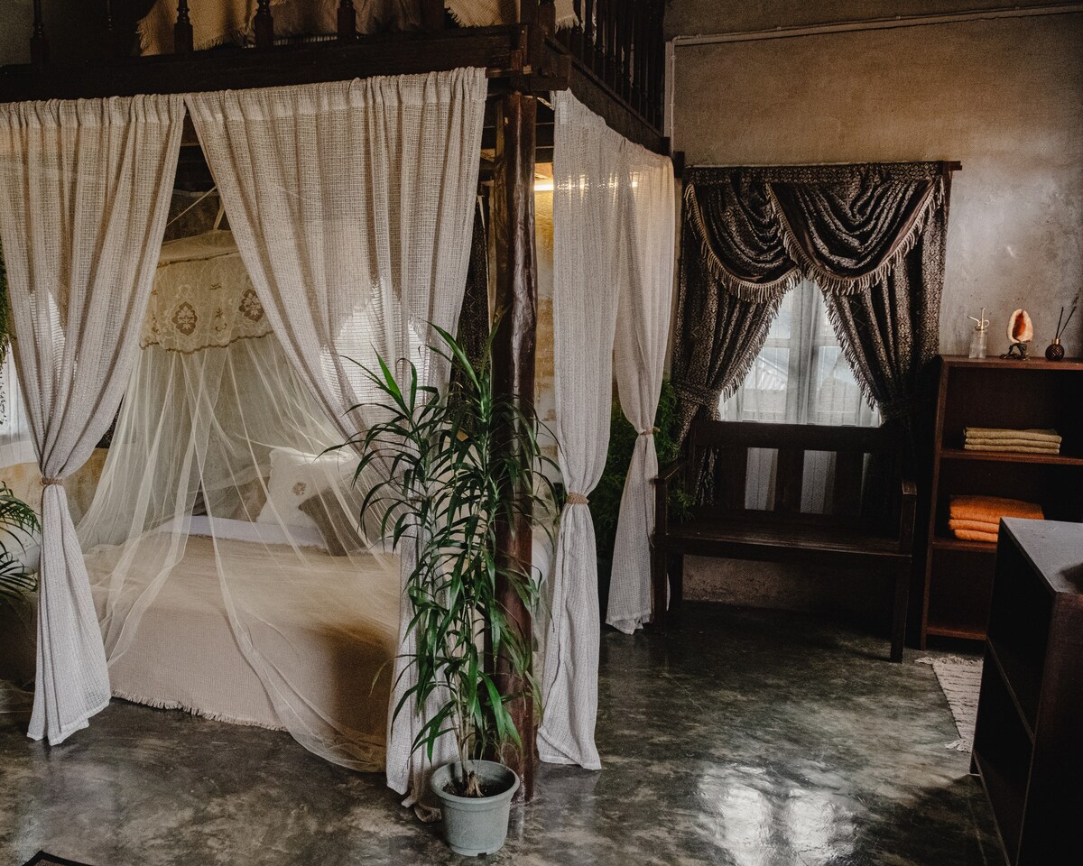 A colonial-style home reimagined as a quiet, art-filled island retreat. This is a unique stay created for travelers seeking a cozy, peaceful retreat in the heart of town. Blending shabby-chic design, reclaimed wood, and preserved colonial details, the home offers a work-friendly and restful space at the same time. With an open loft, king-size bed, and outdoor shower that invites you to slow down, create, and experience Siargao in a more intentional way. This is real SLOW LIVING.