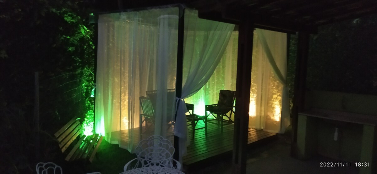 Suite cómoda y bien equipada para parejas en propiedad compartida. Cuenta con cama doble, TV con Chromecast, ventilador, aire acondicionado, armario, ropa de cama/baño, sillas de playa, nevera y sombrilla. Tiene balcón con cocina rústica. En la propiedad hay ducha, terraza, lavandería, jardín y espacio para Luau compartidos. Estamos a 800 metros de la playa de Lagoinha y a 300 metros de las ruinas y cascadas. Hay restaurantes, heladerías y supermercados cerca.