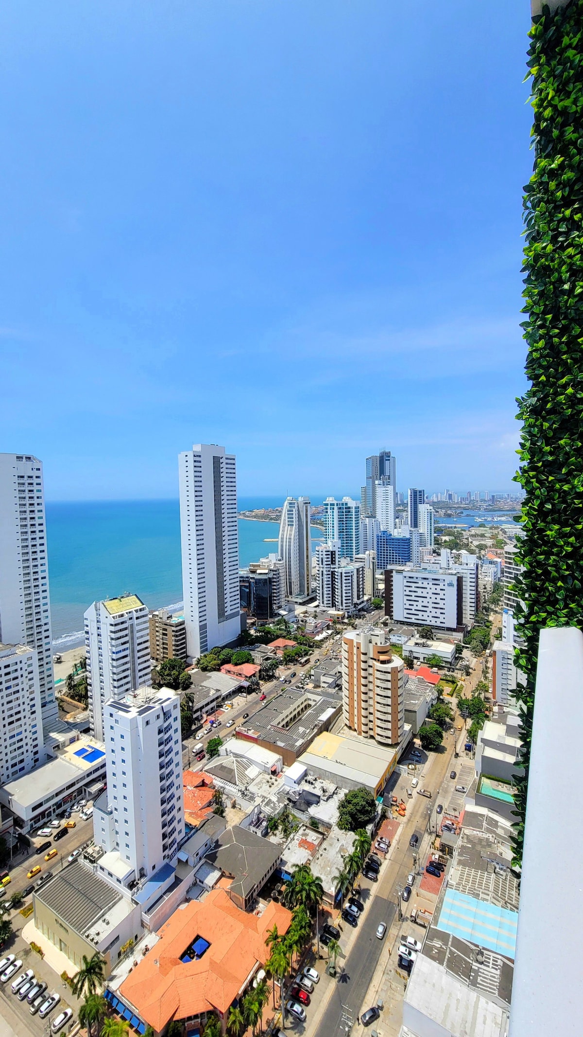 Espectacular apartamento cerca de la playa y del centro histórico, completamente dotado y amoblado con todas las comodidades (Agua caliente, cama KING, etc.). Cuenta con una excelente ubicación, y con fácil acceso a centros comerciales, restaurantes, supermercados y más. El edificio cuenta con lobby tipo hotel, parqueadero, vigilancia las 24 horas, jacuzzi, piscina infinita, zona bbq, terrazas y gimnasio (todo en el rooftop del edificio).