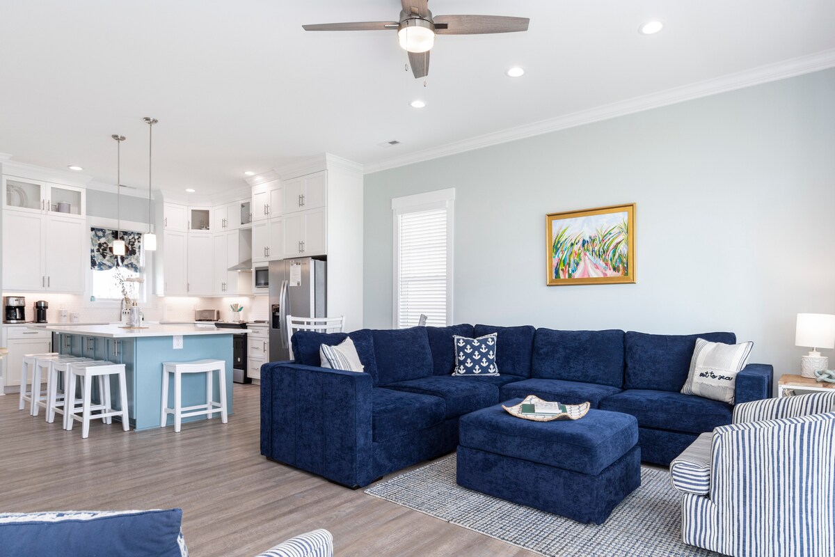 This cheerful retreat has an amazing secluded feel with stylish renovations and spectacular ocean views perfect for your next holiday. Key Features: -Sleeps 9 guests (3 bedrooms: 2 kings, 1 bunk bed w/ trundle) -Great outdoor deck space w/stunning ocean views -Pack n play, kids dishes and rollaway -Fully equipped kitchen -Coffee station (Cuisinart: Coffee pot & K-cup functions) -4 smart TVs -Inviting open concept great room -Washer/dryer -Pebble ice machine -Outdoor shower -Off street parking