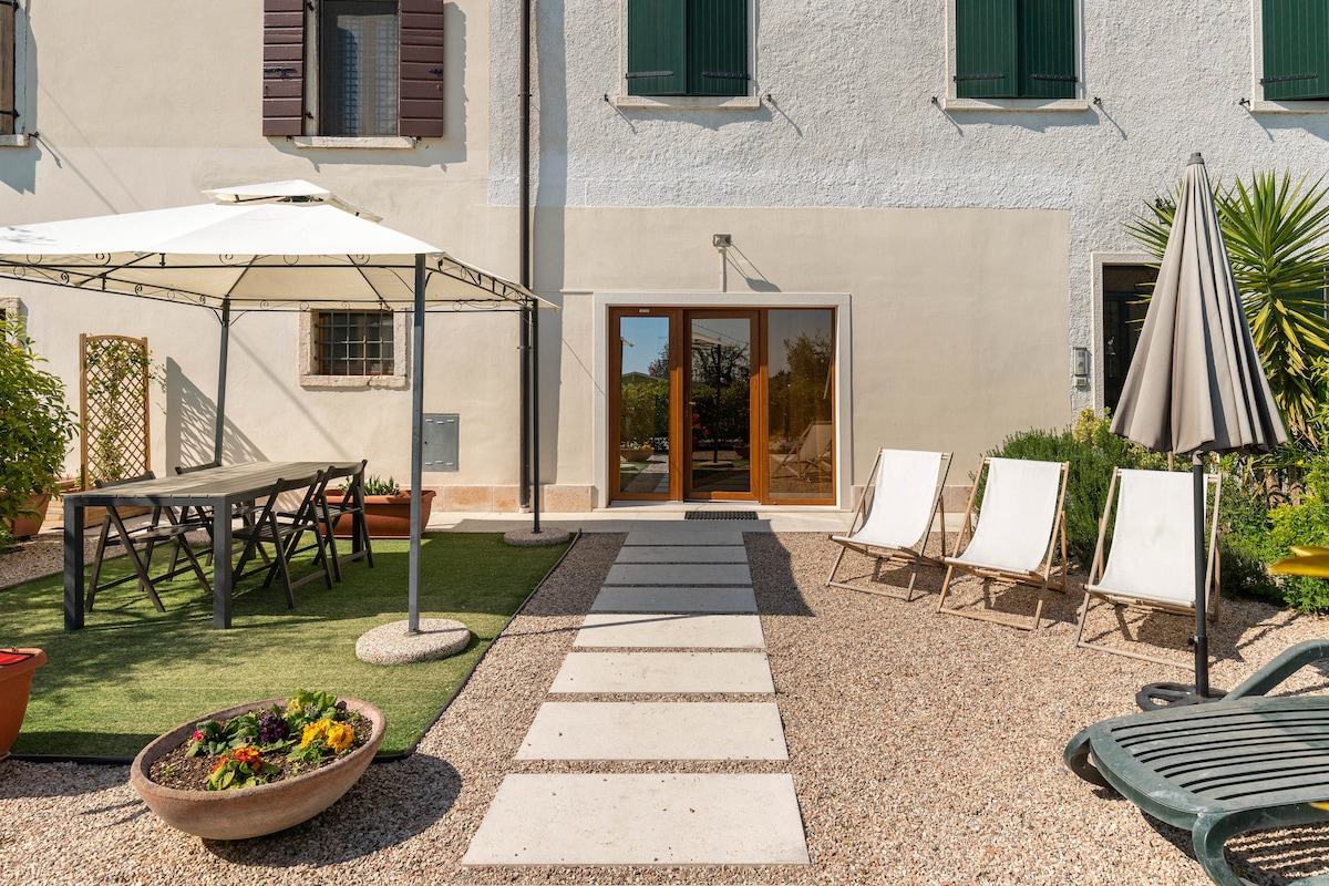 Ca’ del Buso is a 15th-century residence among the hills of Valpolicella. Immersed in silence, it welcomes you with a delightful panorama where the gaze stretches over vineyards, cherry trees, and centuries-old olive trees: the ideal place to rejuvenate body and soul. Restored in 2011, the property offers two homes with modern and refined design. Here, designer furnishings create a noble contrast with the ancient stones, offering you a unique stay between historical charm and elite comfort.
