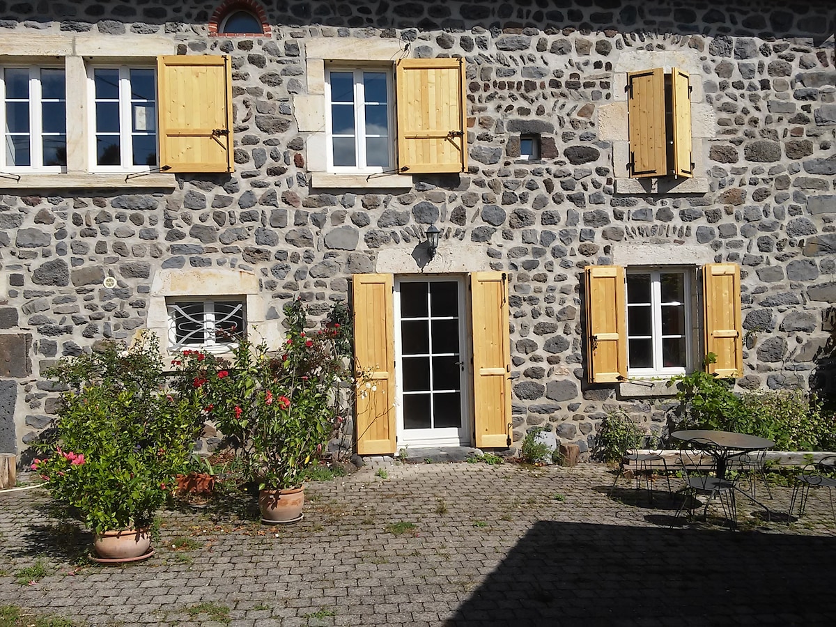 Ce logement de 2 pièces ( chambre et cuisine-séjour ) est situé au Rdc d'une vieille maison typique d'Auvergne très bien renovée et confortable ; l'entrée est indépendante. Orienté sud et ouest, ce gîte est lumineux et chaleureux - on peut aussi manger dehors dans la cour (non privative) - la situation du hameau est très calme, propice aux vacances ou au repos des randonneurs -