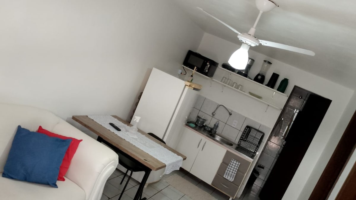 Acogedor apartamento, en una calle tranquila y un barrio tranquilo. Cuenta con elementos básicos para una estancia cómoda. Para los días calurosos, el aire acondicionado puede hacer que sus noches sean más agradables. Para estadías largas, la lavadora es un diferencial. ¡El apartamento cuenta con internet de fibra de 200 mg para los que vienen a trabajar! Hay un lugar de estacionamiento disponible para el huésped. Y para mayor tranquilidad, el condominio cuenta con sistema de alarma.
