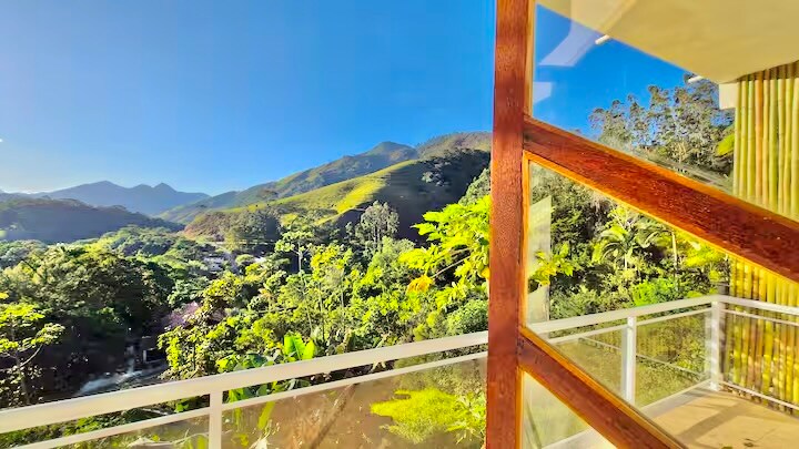 Casa rústica y acogedora con amplio espacio al aire libre con piscina, ideal para que lo disfrutes con familiares y grupos de amigos. La casa está rodeada de montañas y ofrece una hermosa vista del amanecer. Situado justo al lado del río que bordea el condominio, tiene fácil acceso a un punto de baño con agua clara (excepto en caso de lluvia intensa) y una pequeña "playa" natural en el lecho del río, ideal para relajarse.
