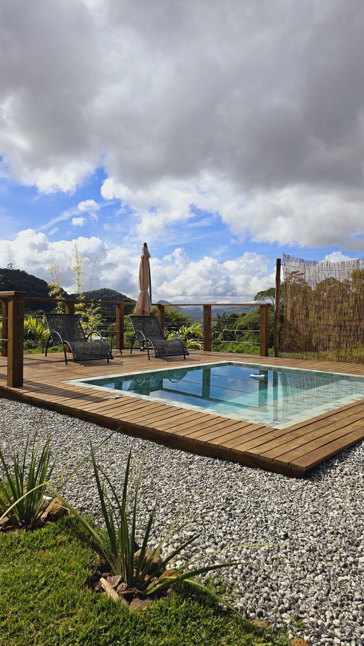 Bem vinda (o) ao @nossocanto_serrarj. Aproveite na montanha o charme moderno desta casa. Casa com piscina, churrasqueira, fogueira externa, de frente ao Rio e com um céu estrelado nas noites claras. São dois quartos (suites) com ar condicionado, camas de excelente qualidade e um barulho do Rio confortante e temos wifi a fibra. Caso queira uma pessoa para ajudar com a limpeza e comida durante a estadia, indicamos profissionais da região com o pagamento direto à ajudante.