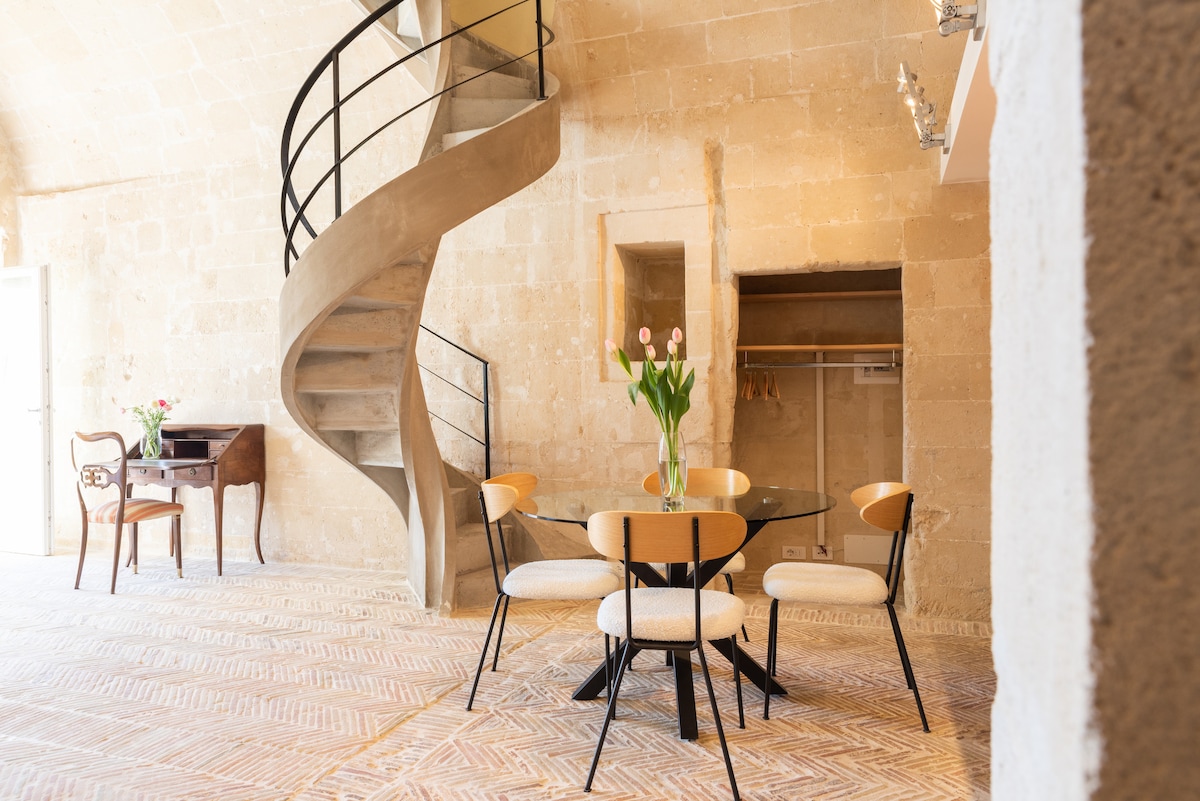 Suite Santa Maria - L'Opera dell'Architetto es una maravillosa suite ubicada en el corazón de los Sassi de Matera, a solo unos pasos de la impresionante catedral de estilo románico-pugliese del siglo XIII. Ubicada en un antiguo palacete en la Civita de esta hermosa ciudad, nuestra casa ofrece un patio con vistas encantadoras tanto del arroyo Gravina como del impresionante cañón donde se encuentra el Parque de las Iglesias Rupestres.