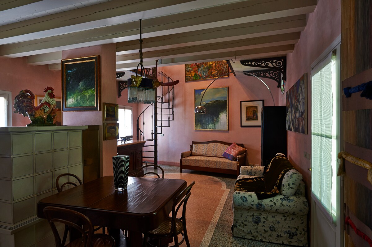 Cada rincón de mi casa transpira por la ciudad, El ambiente veneciano te cubre, el deslizamiento de la góndola y el villanciamiento de los gondoleros, las llamamientos estridentes de las gaviotas y el peaje de las campanas de las hermosas iglesias de los alrededores.