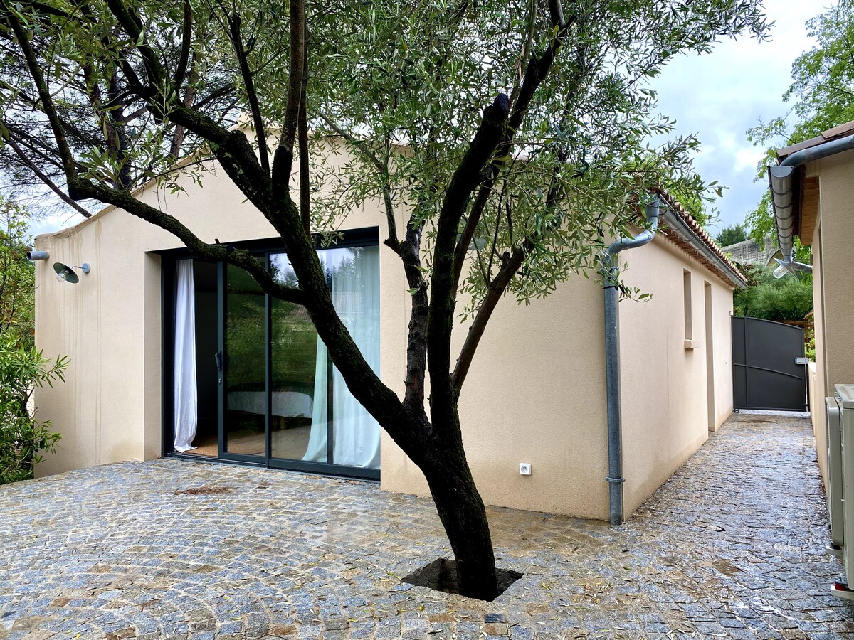 Dependencia de 27 m2, como suite principal al lado de nuestra villa. Piscina compartida con la casa. Entrada privada sin pared adyacente a la villa Una terraza con mesa bajo la pérgola está reservada para usted. ropa de cama a su disposición . No es un estudio, por lo que no hay una cocina real ni fregadero. Sin embargo, el espacio en la parte inferior está equipado con nevera/congelador, microondas, cafetera, tostadora, vajilla. Azúcar, té, cápsulas de café disponibles.