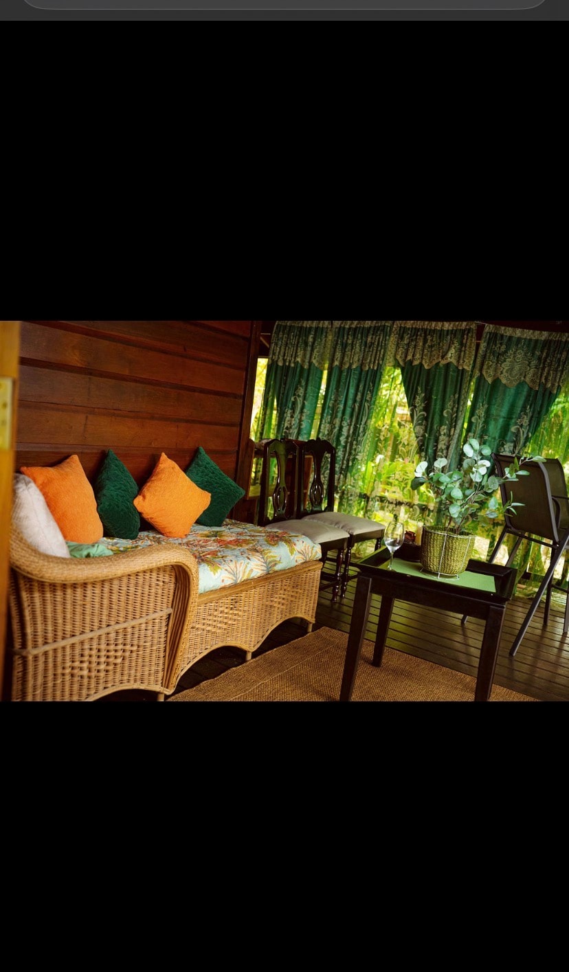 Azaniah's Cabin is nestled within a lush green forested community at an elevated altitude where one can take in the breathtaking undulating tropical landscape of nature's best. This greenheart cabin boasts its sheer comfort, privacy and breath-taking views of the Caribbean Sea, along with its scenic tropical landscape. Azaniah's Cabin is a haven for tranquil ambience and comfort. From its panoramic perch, guests can admire some of the most exquisite sunsets ever to be experienced.