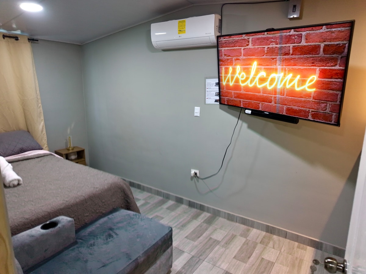 ¡Escapada Urbana Perfecta en el Corazón de San Salvador! Descubre la energía de San Salvador desde nuestro mini apartamento, idealmente ubicado a pasos del Centro Histórico. Perfecto para parejas, familias pequeñas o grupos de amigos(1 a 4 personas) Dos cómodas camas full garantizan un sueño reparador después de explorar la ciudad. Equipado con una mini refrigeradora para tus bebidas y snacks, cafetera, microondas para calentar tus comidas favoritas.