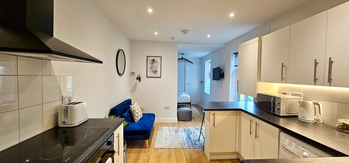 Este anexo independiente ofrece un lugar privado y conveniente para hospedarte con su propio acceso independiente a través de un carril. Situado en la parte inferior de un jardín, permite a los huéspedes ir y venir libremente sin pasar por la casa principal. El centro de la ciudad está a unos 30 minutos a pie, con tiendas locales, cafeterías y restaurantes cercanos. Totalmente equipado y cuidadosamente diseñado, el espacio es ideal para huéspedes que buscan comodidad, privacidad y fácil acceso a los servicios locales para estancias cortas o largas.