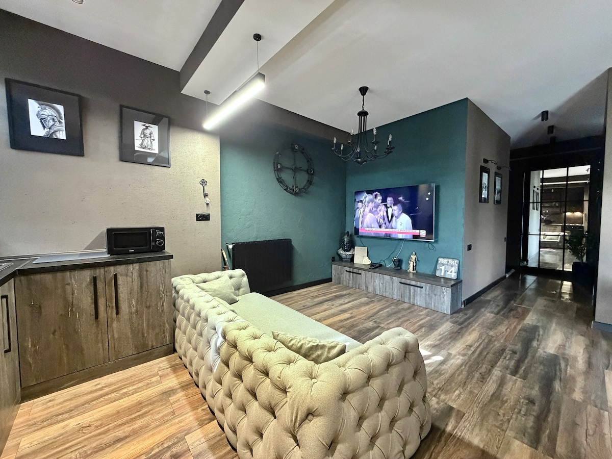 Está ubicado en el segundo piso de un edificio histórico recientemente renovado en el centro del casco antiguo, que es el centro turístico de Tiflis. La plaza Freedom está a 150 metros. La av. de Rustaveli y la estación de metro están a 3 minutos a pie. En el dormitorio hay una cama tamaño king y también un sofá, que se abre y se adapta a dos personas más. El apartamento está equipado con todos los artículos necesarios: aire acondicionado, sistema de calefacción, balcón francés,wifi, cable de televisión,nevera,lavadora, plancha, secador de pelo.