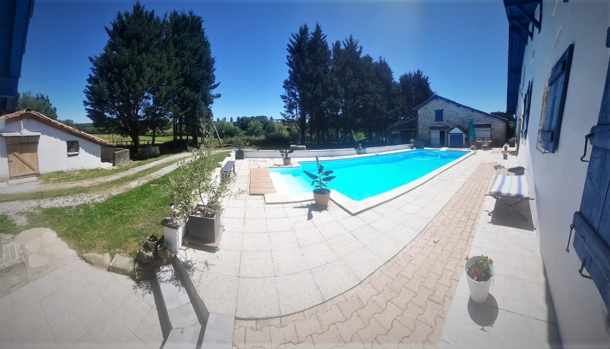 Maison Bidas está magníficamente ubicada a una hora en coche de las playas locales, los Pirineos y España. Situada en los terrenos de la granja de los propietarios, rodeada de acres de viñedos, maíz y prados, la casa está enclavada dentro del edificio original de la granja que data de cientos de años, combinando cómodamente lo antiguo con lo nuevo para ofrecer una escapada relajante. Un hogar idílico lejos de casa donde realmente podrá relajarse y disfrutar de la hermosa campiña francesa. Una cálida bienvenida te espera con privacidad garantizada.