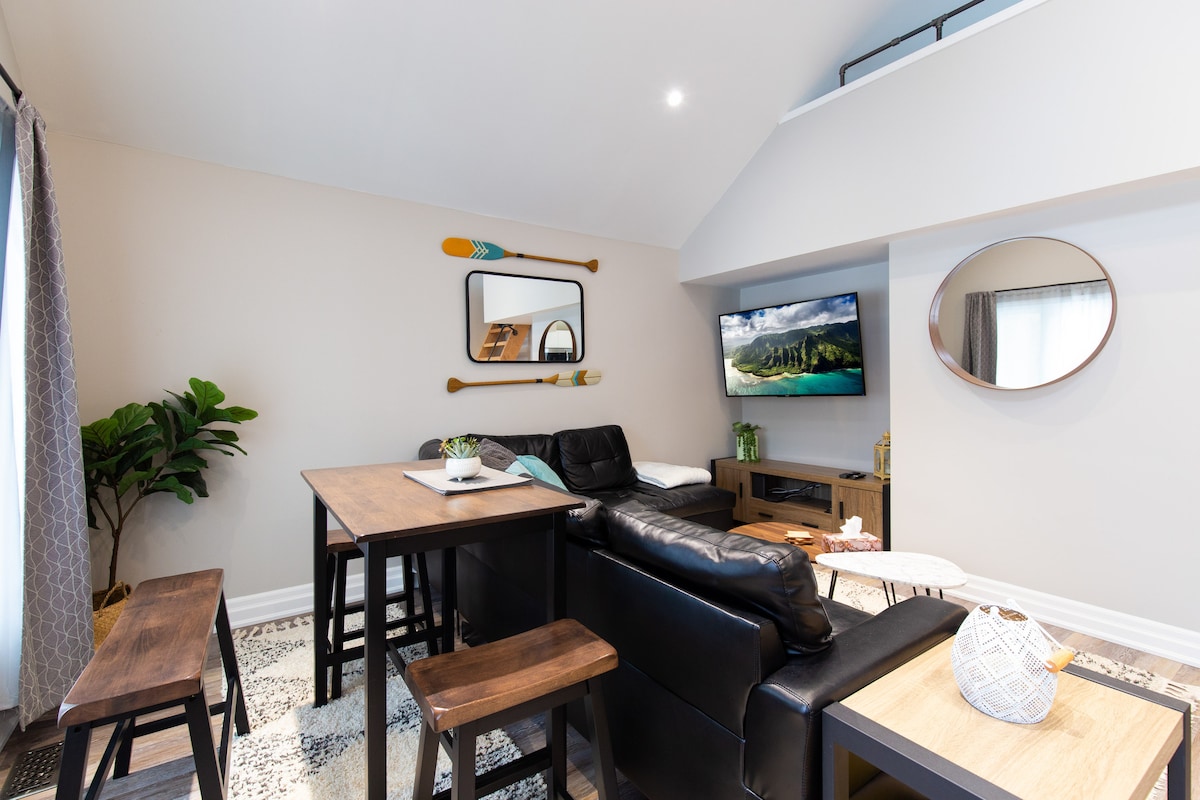 Bienvenido a nuestro encantador apartamento de segunda planta en el centro de Midland, Ontario. Este acogedor espacio cuenta con un dormitorio, una oficina con futón, cocina completa, baño, lavandería y una luminosa sala de estar de concepto abierto. Disfruta de fácil acceso a tiendas, restaurantes y lugares de interés locales. Explora el pintoresco paseo marítimo y las rutas de senderismo cercanas. Refúgiate en este cómodo y acogedor apartamento después de un día de trabajo o juego. Reserva tu alojamiento hoy mismo para disfrutar de una experiencia cómoda y memorable en Midland.