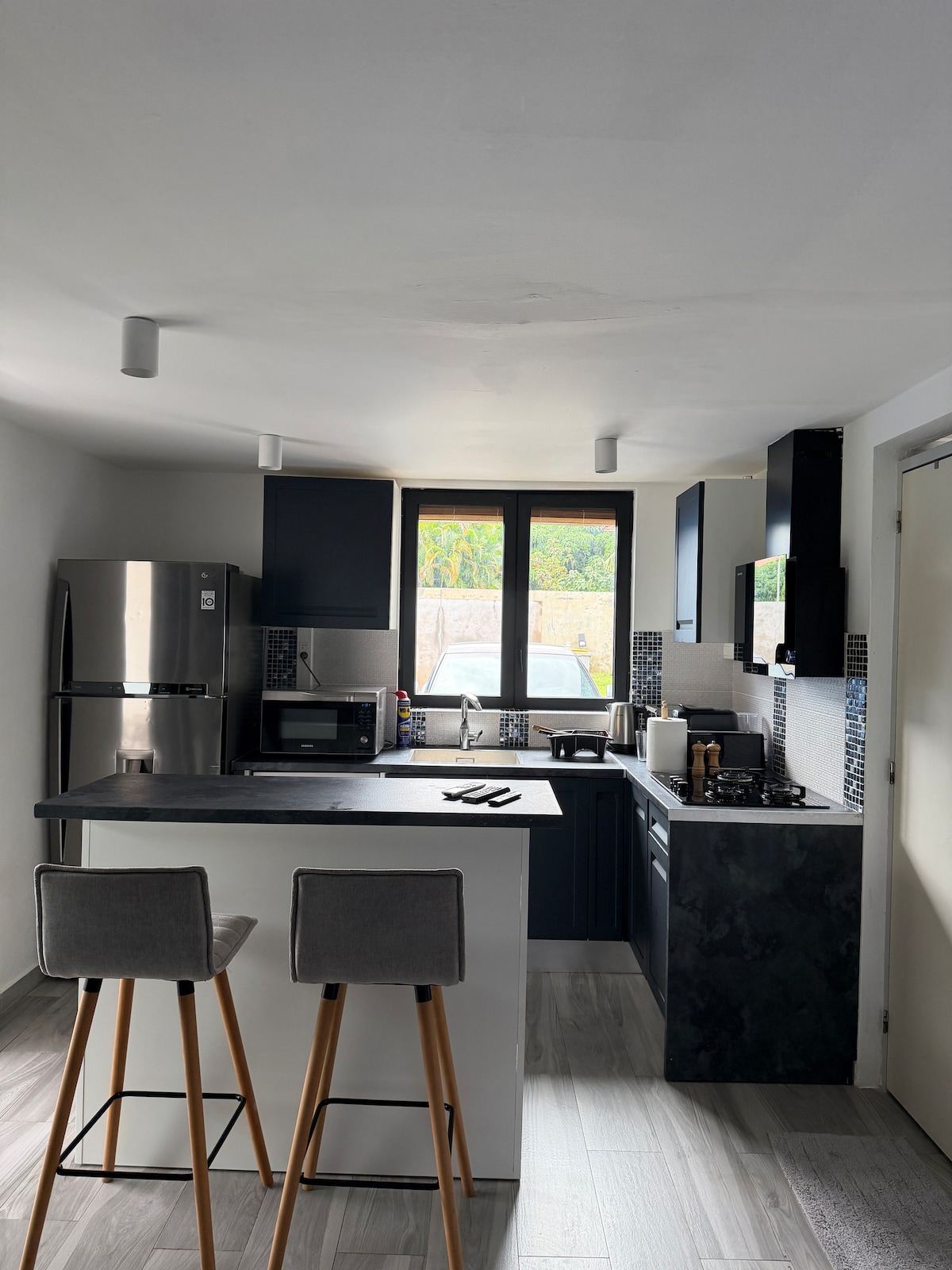 ★Apartamento funcional y cocooning en Montjoly a 7 minutos de las playas a 20 minutos del aeropuerto .★ Ubicación tranquila y cerca de todos los comercios. Alojamiento ★Apartamento de 37,65 m2 con terraza de 14 m2 ★ →Una habitación compuesta por una cama Queen size y almacenamiento. →Sofá tres plazas en la sala de estar. Instalaciones: →Cocina de cuarzo equipada . → cama doble 160x200, →Cuarto de baño totalmente equipado que consta de una secadora, artículos de aseo proporcionados, → Wifi y Netflix disponibles.