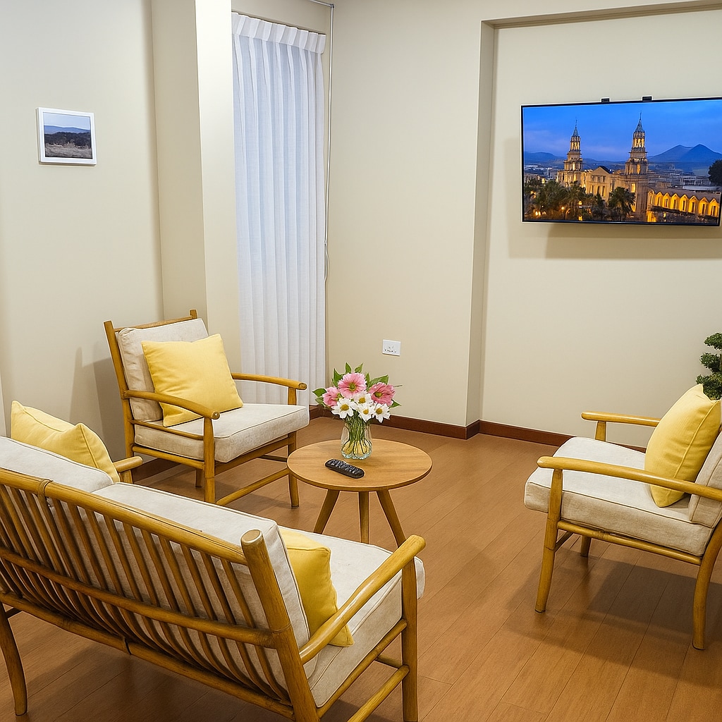 Disfruta de una estadía cómoda y moderna en nuestro acogedor departamento ubicado en el distrito de Cayma, una de las zonas más seguras y accesibles de Arequipa. Ideal para viajes de negocios, vacaciones en pareja o estadías cortas y largas.