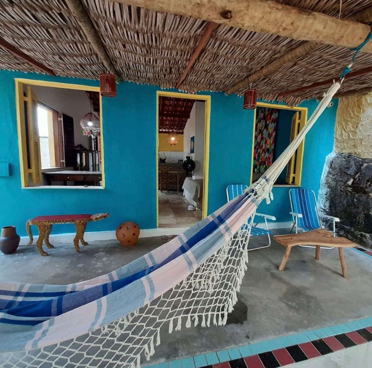 Relájate con toda la familia en este alojamiento tranquilo. Cuenta con 4 dormitorios, 2 de ellos suites (todos con aire acondicionado), cocina equipada, sala de estar con TV, wifi, piscina y terraza con barbacoa. Situado en la playa de Guajiru, en la calle principal, a 500 metros de la playa. Cerca de las playas de Flecheiras y Mundau. Cerca de tiendas, restaurantes y farmacia.