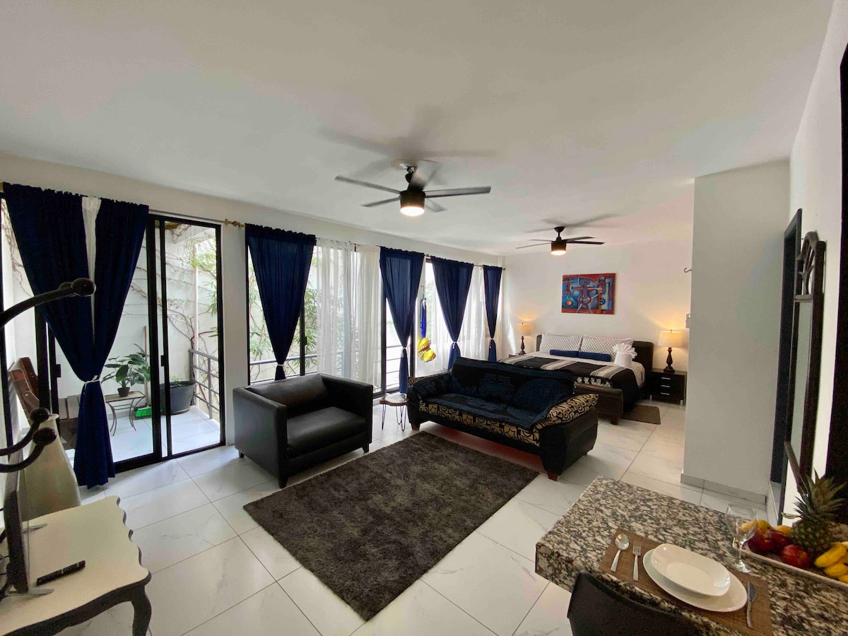 Descansa en una cama King Size dentro de un estudio elegante y luminoso que combina confort y estilo. Ubicado en la Quinta Avenida con Calle 52, en la parte más tranquila, moderna y bonita de Playa del Carmen, tendrás a tu alcance cafeterías, restaurantes, boutiques y la playa a pocos minutos. Disfruta WiFi rápido, Smart TV, cocina equipada y baño con regadera de lluvia. Un refugio boutique en el corazón del Caribe para viajeros sofisticados. ¡Reserva ahora!