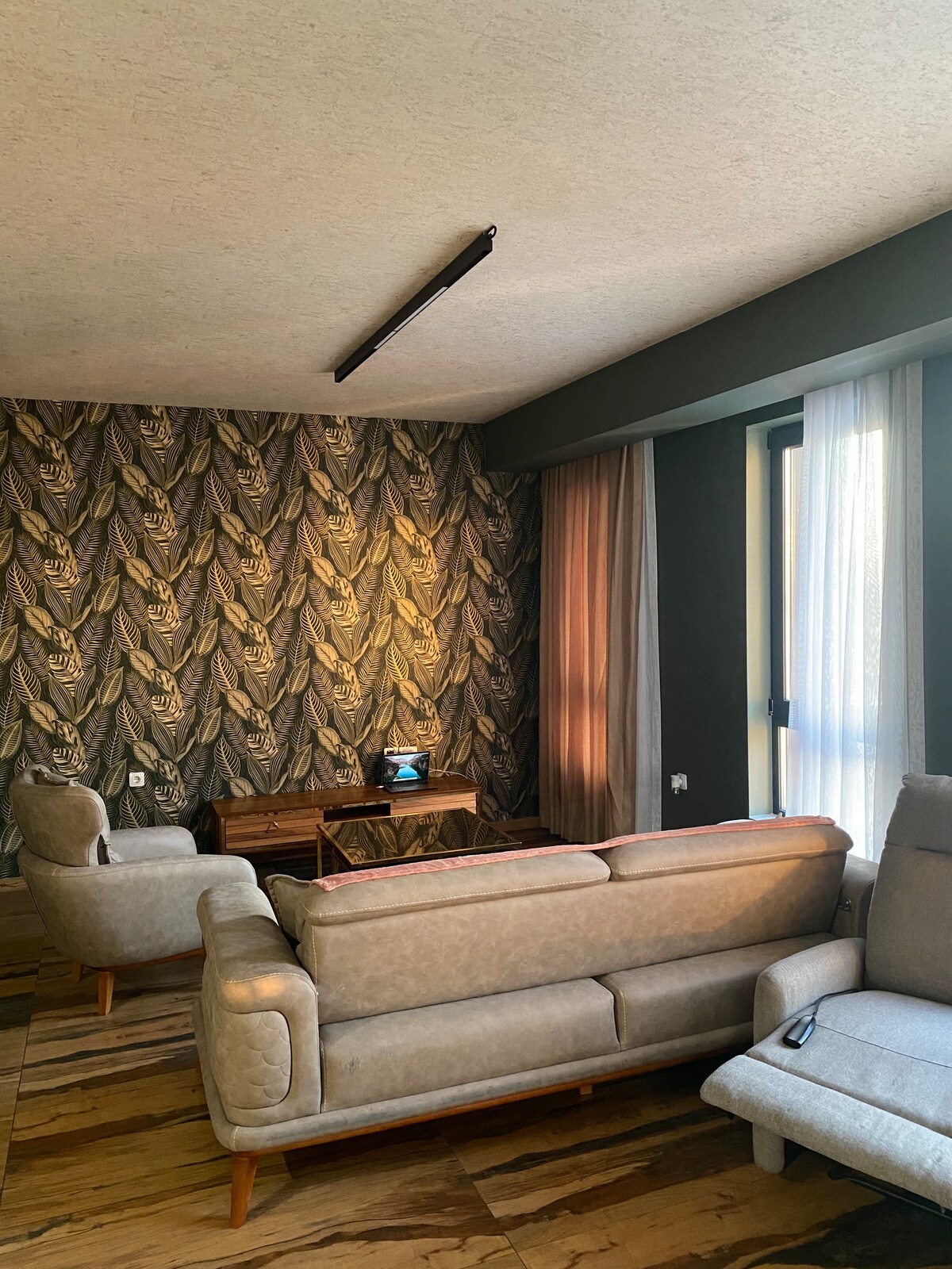 Лукс и комфорт в сърцето на 5-звезден хотел в центъра на Пловдив. Добре дошли във вашия частен едноспален апартамент, разположен на територията на престижен 5-звезден хотел. Тук ще се насладите на уют и удобства. Апартаментът разполага с: * Спалня с голямо двойно легло, качествено спално бельо. * Просторна всекидневна с уютен кът за почивка и Smart TV. * Напълно оборудвана кухня. * Модерна баня с луксозни тоалетни принадлежности и свежи кърпи. * 24 часа жива охрана * 24 часа рецепция