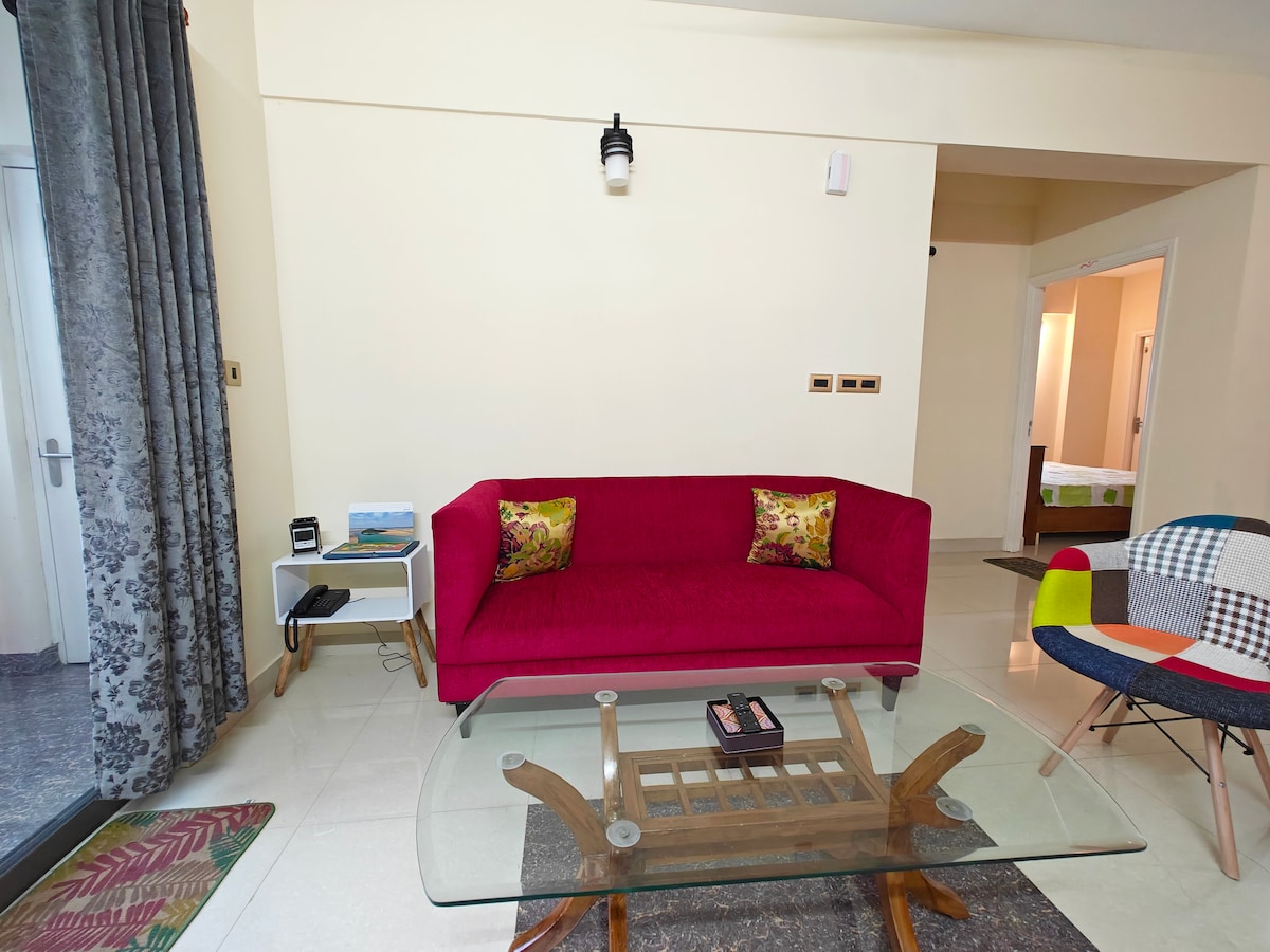 Bienvenido a Amber & Jade Stays, tu acogedor hogar lejos de casa en las tranquilas afueras de Bhubaneswar. Este elegante 1BHK combina comodidad y naturaleza con una luminosa sala de estar, cocina totalmente equipada y un dormitorio tamaño queen. Disfruta de comodidades modernas como wifi, aire acondicionado y un televisor inteligente en un entorno sereno y apto para mascotas rodeado de vegetación. Es ideal para parejas, viajeros o trabajadores remotos que buscan tranquilidad y comodidad. Trae a tu amigo peludo y relájate con comodidad en Amber & Jade Stays. 🐾
