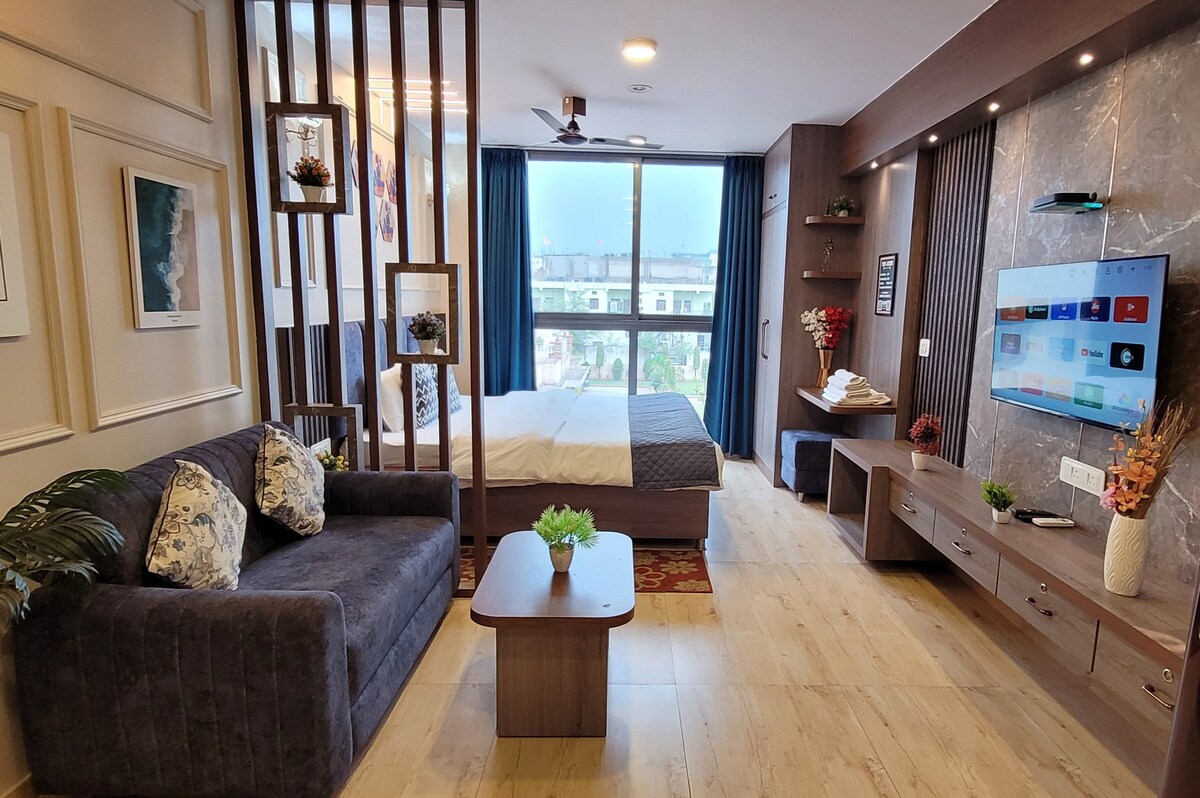 600 pies cuadrados de lujo 1BHK en el CENTRO DE LA CIUDAD en una colonia VIP tranquila llamada: C-SCHEME * Wifi gratuito - velocidad de 100 Mbps * Perfecto para hasta 3 ocupantes. * TV de 45 pulgadas: Netflix, Hotstar, YouTube * Cortinas opacas para un sueño ininterrumpido. * Uber y Ola en 2 minutos. Proximidad al transporte público a solo 50 metros a pie. 🚕🛺 * Central Park a solo 1 km 🏃 * La ciudad vieja de Jaipur está a solo 1,2 km 🛍️ * Consulta mi guía para obtener recomendaciones de comida, café, etc. ✈️ - 7,8 Km 🚂 - 2,6 km 🚌 - 3,6 km