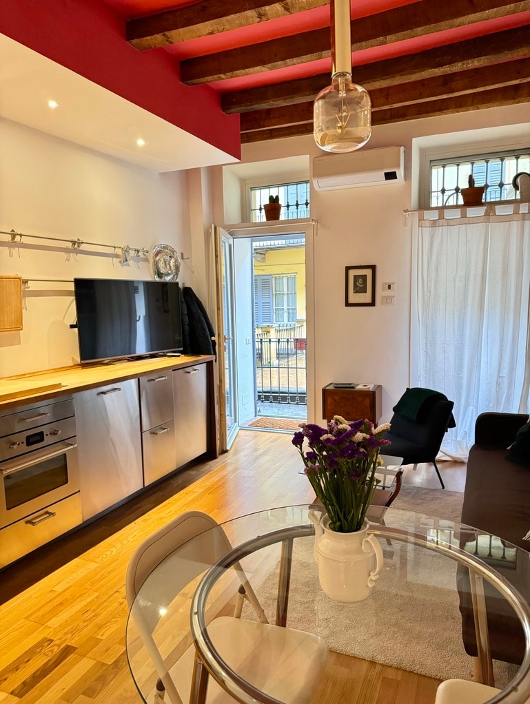 ¡Alojarse en este miniloft en el corazón de NoLo hará que tu estancia en Milán sea realmente agradable! La estructura de mi casa se hace especial por los techos muy altos y las vigas de madera a la vista, los espacios muy luminosos y el delicioso balcón habitable, ideal para disfrutar del desayuno con la tranquilidad que solo algunos patios milaneses pueden ofrecer. La cocina de la isla es el corazón de la casa, ¡mientras que el dormitorio en el ático es una joya romántica que no te puedes perder!