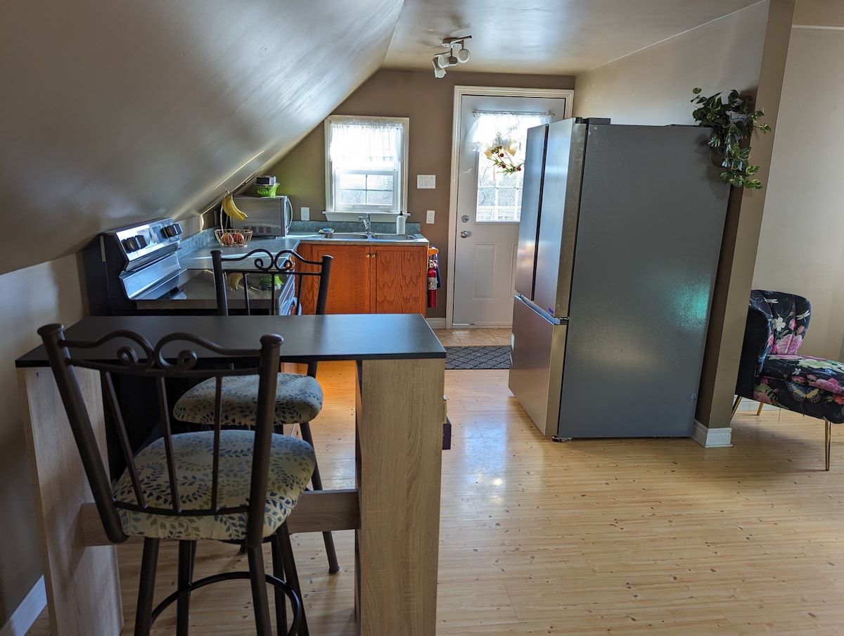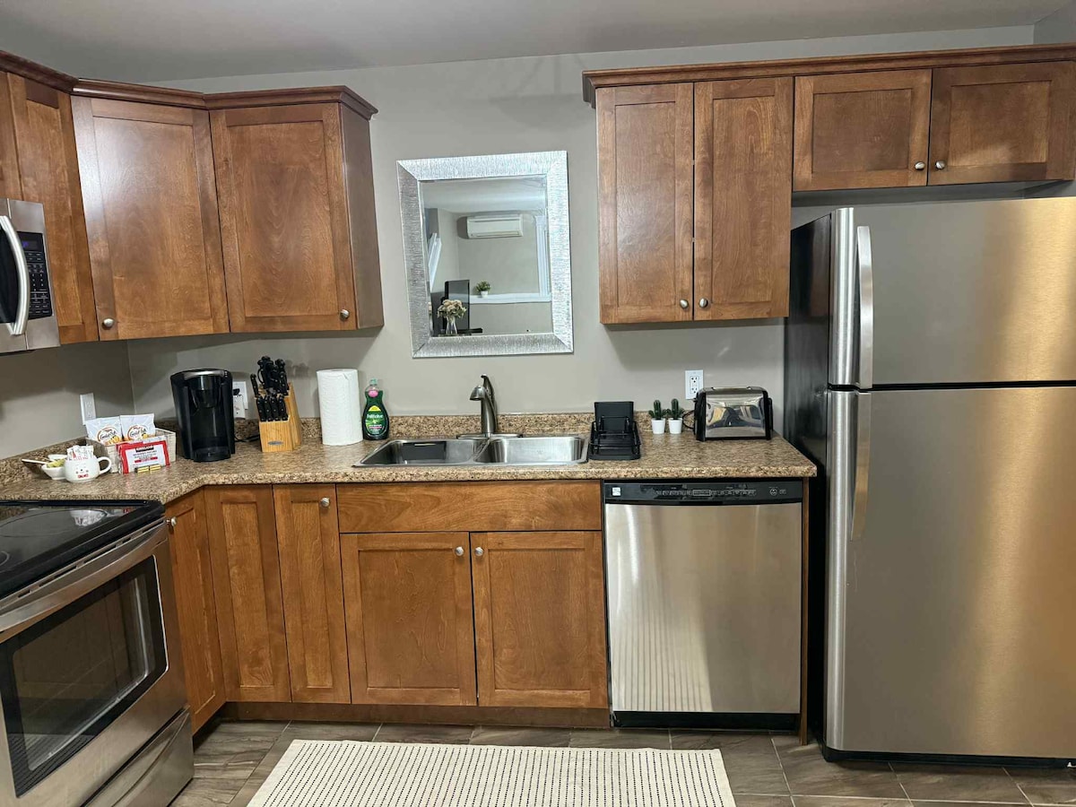 Bienvenido a nuestro hermoso apartamento ejecutivo de 2 pisos ubicado en la parte alta de Fredericton. Estamos situados en una calle tranquila y a solo un par de kilómetros de la autopista, Tim Hortons y una gasolinera. El centro de la ciudad está a solo unos minutos y el centro comercial está a solo 5 minutos en coche. También estamos cerca de muchas rutas de senderismo y pistas de esquí para los amantes del aire libre. Este apartamento de nueva construcción es de concepto abierto, tiene encimeras de granito, 1,5 baños y lavandería. ¡La sala de estar y los dormitorios están bañados por el sol!