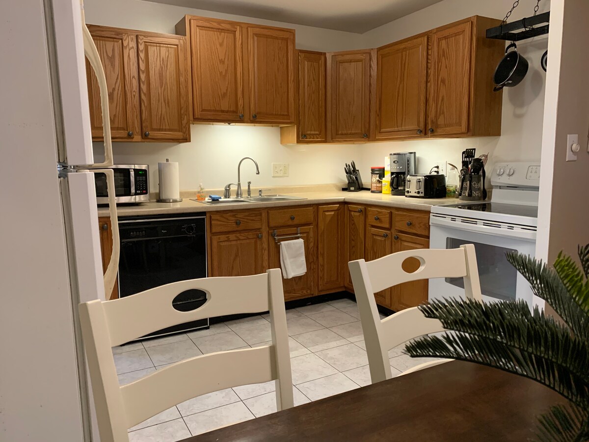 El apartamento totalmente amueblado y equipado será tu hogar lejos de casa. El dormitorio tiene una cama tamaño king, baño completo y un soleado patio con vistas al monte Nittany. El sofá de la sala de estar se puede convertir en una cama extraíble de tamaño completo para tener espacio adicional para dormir. La cocina personalizada tiene electrodomésticos nuevos de tamaño completo.