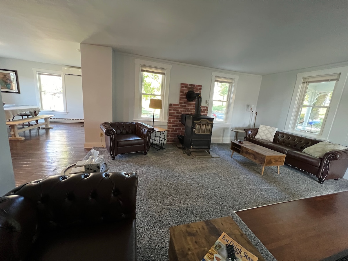 La granja Spring Hollow Farm, RECIENTEMENTE RENOVADA a partir de enero de 2025, ofrece lo mejor de ambos mundos de State College: una casa espaciosa en un entorno tranquilo con acceso a actividades al aire libre, sin embargo, las comodidades de restaurantes y tiendas están a solo 15 minutos. La granja tiene mucho espacio para familias/grupos con muchas oportunidades para relajarse. La casa es de 5 dormitorios, 2,5 baños con capacidad para 10 personas, incluidos niños y bebés. Enchufe de vehículos eléctricos de 30 dormitorios. El alojamiento es estrictamente PARA NO FUMADORES ni FIESTAS.