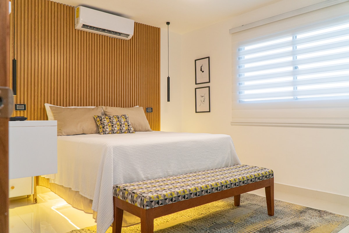 De una habitación, Moderno apartamento a estrenar con un diseño de interior minimalista y cómodo. Situado en el corazón de la ciudad de Santiago De Los Caballeros. Cerca del centro de la ciudad: Monumento, Agora Mall, restaurantes y Hospital/farmacia. Todo lo que necesite estará a menos de 5 minutos. Lugar Perfecto Para una pareja o viajero solo. A 15 minutos del Aeropuerto Internacional del Cibao.