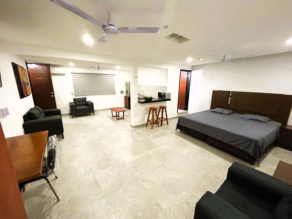 Depto tipo Estudio, moderno, cómodo y bien equipado, ubicado en excelente zona al NORTE de Merida (no CENTRO), acceso rápido a Centros comerciales, Restaurantes, Bancos, Museos y Puerto Progreso (playa). Ideal para trabajo, vacaciones o fin de semana. Centro Comercial Galerias y Gran Plaza a 5min en vehículo, La Isla Merida y Plaza Altabrisa a 15min. Caminando queda: Centro de Convenciones 18min Escuela Bancaria y Comercial (EBC) 12min Plaza comercial Altana 12min Chedraui Selecto 15min