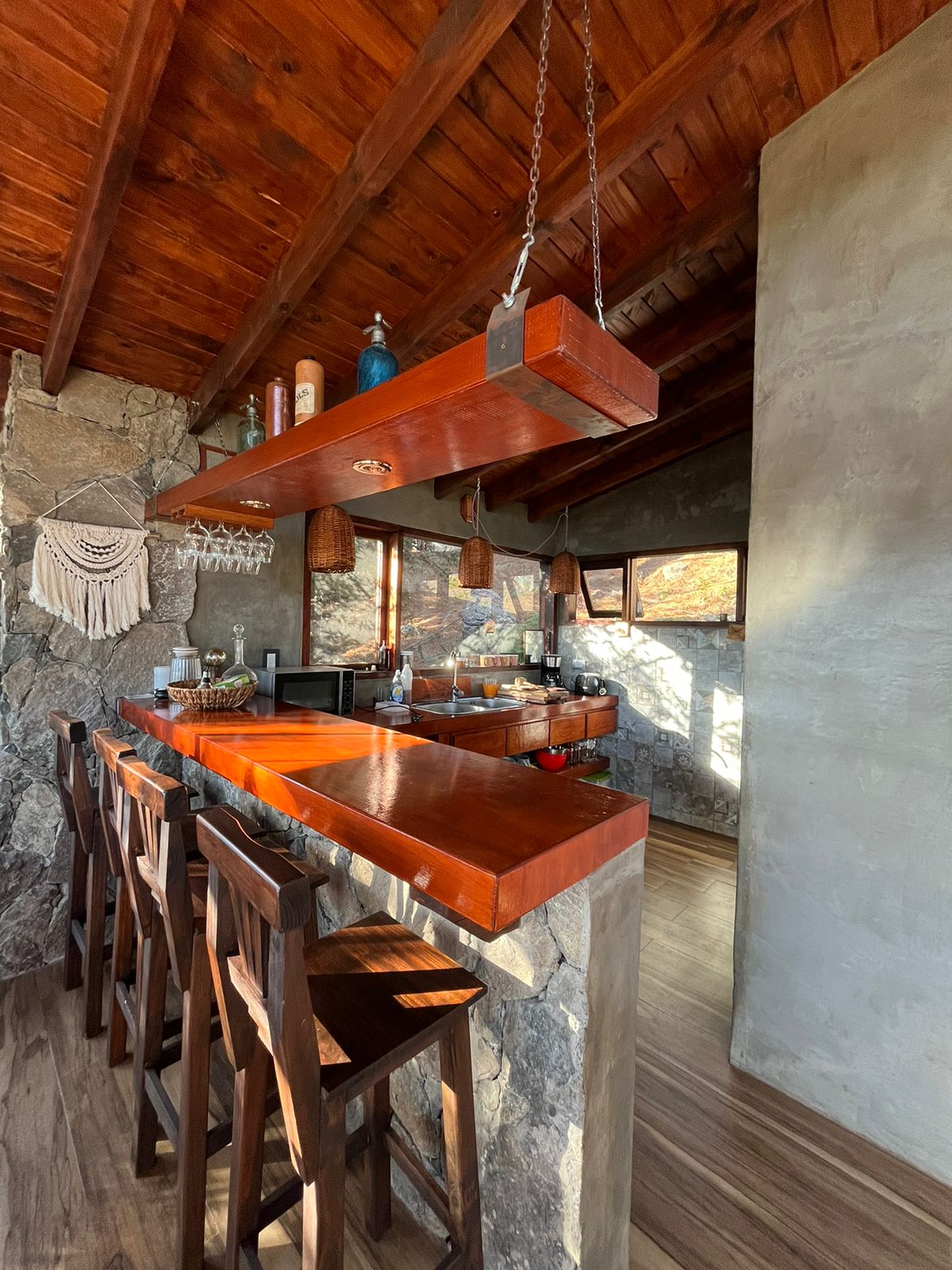 Rodeada de bosque, pensada para disfrutar el silencio y el confort en un entorno privado. Cuenta con cocina equipada, comedor y living integrado, dormitorio independiente y baño completo. Un alojamiento de diseño, inmerso en la naturaleza, se encuentra dentro de un bosque de 10 hectáreas, ideal para una experiencia de descanso en las sierras de Córdoba. Un lugar único y exclusivo: privacidad total y conexión con el entorno, ideal para parejas.
