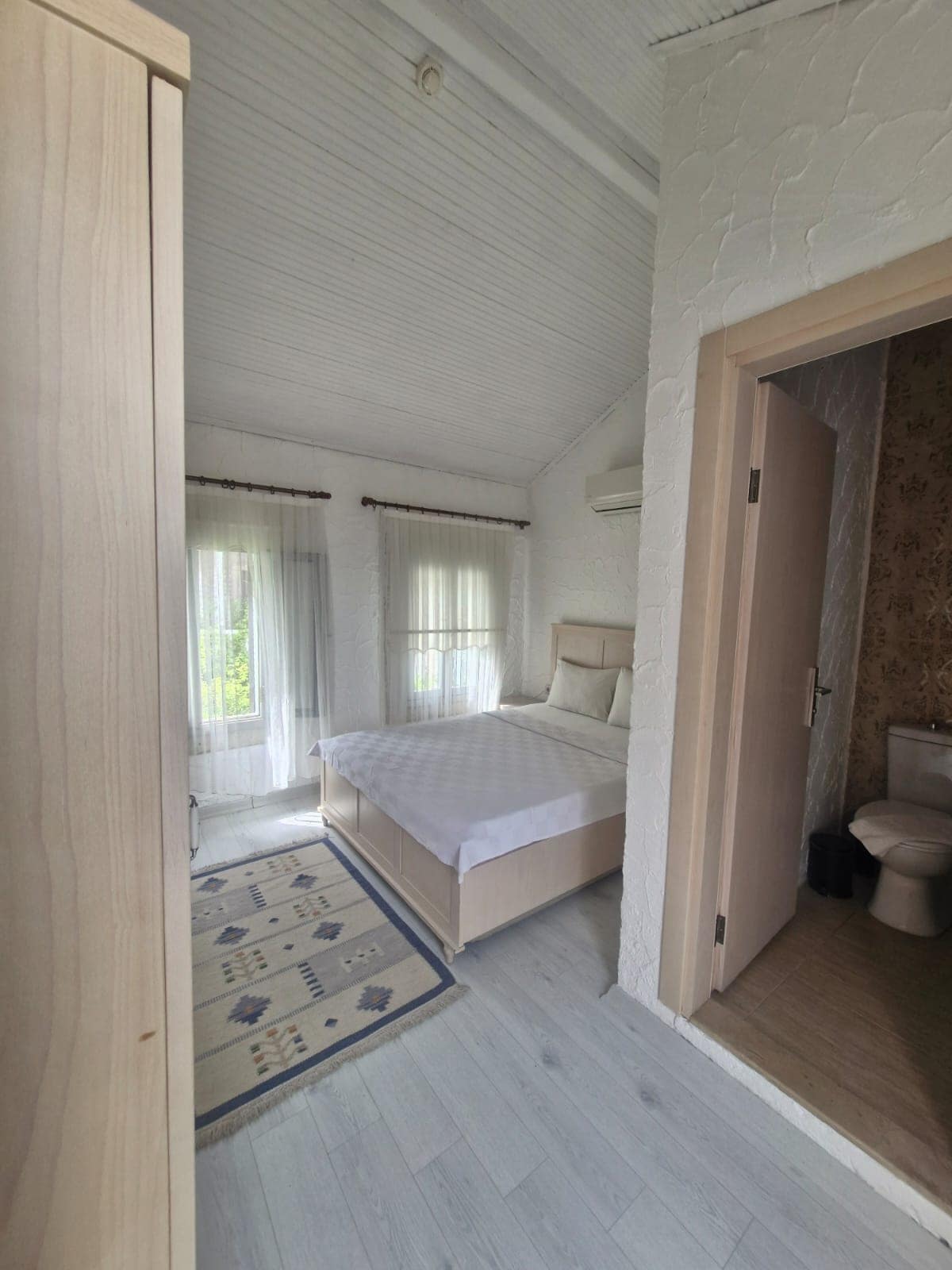 Está formado por dos edificios de dos plantas separados en un área de 1 acre cerca del centro de Çeşme. El desayuno está incluido en el precio. En el desayuno se ofrecen mermeladas y pasteles caseros. El desayuno es rico y agradable. El jardín es lo suficientemente grande y tiene muchas zonas verdes. Hay una zona de estar en el jardín para hacer una hoguera por la noche. Hay menús que se pueden comer durante el día por un cargo adicional, como la sopa del día, el menú de albóndigas y los raviolis turcos. El té se sirve durante todo el día. Hay café, café turco y bebidas frías.