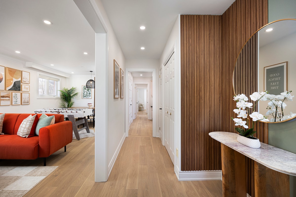 Quédate con confianza en un alojamiento de Superanfitrión en Airbnb de 6 años conocido por su limpieza y cuidado excepcionales. Esta luminosa unidad de 3 dormitorios y 2 baños ofrece mucho más espacio que un hotel o condominio típico, además de un patio trasero privado, un raro refugio en la ciudad para relajarse, disfrutar de un café por la mañana o relajarse después de un día fuera. Ubicado a minutos de Bayview Village, cuenta con hasta 2 lugares de estacionamiento dedicados, un diseño cómodo, dormitorios privados y acogedoras áreas de estar, ideal para familias, profesionales y estancias más largas.