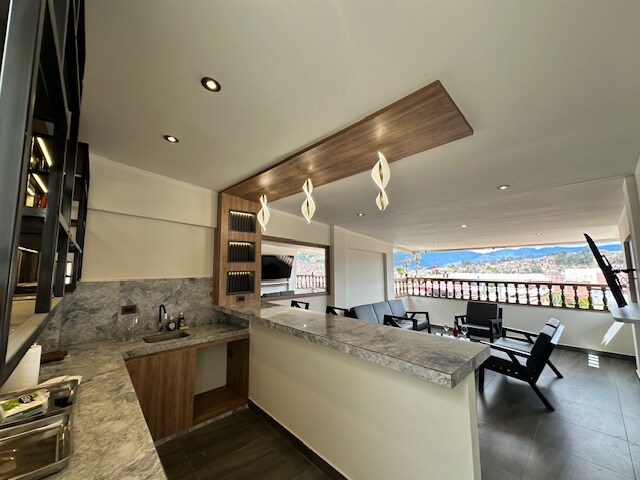 Disfruta de una experiencia con estilo en este alojamiento céntrico. Habitación en el primer piso, con diseño propio, cama Queen Size, baño, cocina y comedor privados, agua caliente, TV 55", Wi Fi, terracita. Tendrás también acceso a otra terraza y bar en el piso superior, con TV de 65" y vista a toda la ciudad.