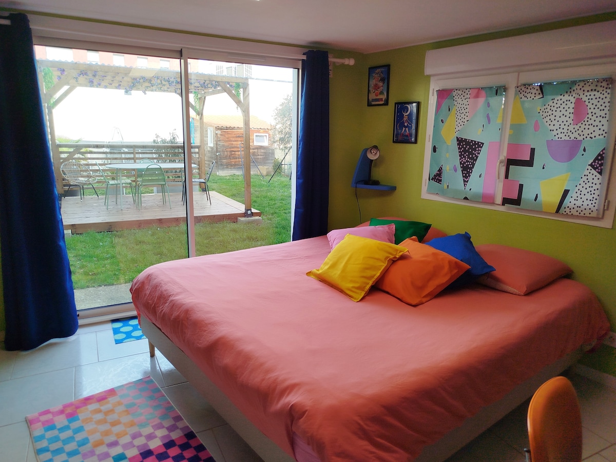 Grand studio indépendant jardin parking sécurisé