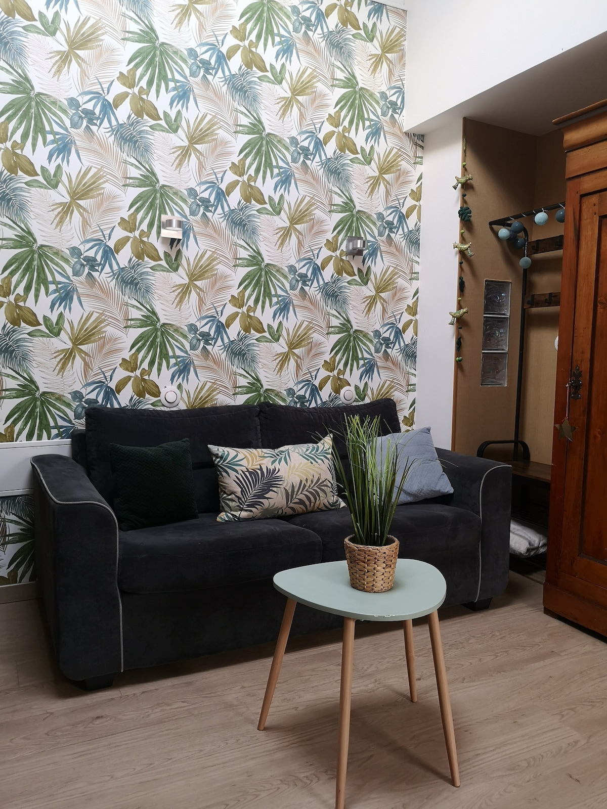 Disfrute de este elegante y céntrico apartamento. Totalmente equipado y recientemente renovado conservando el encanto de lo antiguo (marcos históricos, pared de piedra iluminada...) este apartamento le ofrecerá un servicio de alta gama y una decoración con toques étnicos chic. Para los melómanos y frikis nostálgicos, se puede disfrutar de los vinilos, así como de la máquina de «arcade» disponible (Pac Man :-) (Sofá convertible con capacidad para 2 personas más).
