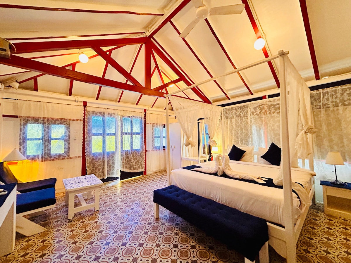 Our Signature Room is a design-forward space featuring a King bed, an open to sky bathroom, and a bathtub blending comfort with thoughtful aesthetics. The room is equipped with high-speed Wi-Fi, air conditioning, and a smart TV for a seamless stay. Located just 1.5 km from the beach and 900 meters from the local market, the property offers easy access while remaining a peaceful retreat. Our spaces are intentionally designed to foster community, creativity, and authentic travel experiences.