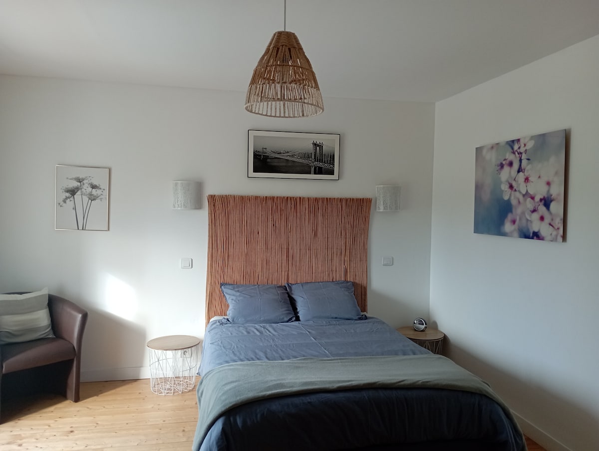 Logement neuf dans un village calme avec tous les essentiels à moins de 5 minutes. Climatisé, composé d'une pièce de vie ouverte avec canapé convertible et TV, 2 chambres, 1 salle d'eau avec douche à l'italienne, 1 WC séparé. Garage pour abriter vélos ou autres, terrasse avec table et chaises pour profiter de vos repas en plein air+2 chiliennes et 2 transats. Draps et serviettes fournis sur demande , et en supplément pour les séjours de moins de 3 nuits draps: 10€/lit serviette:3€/personne