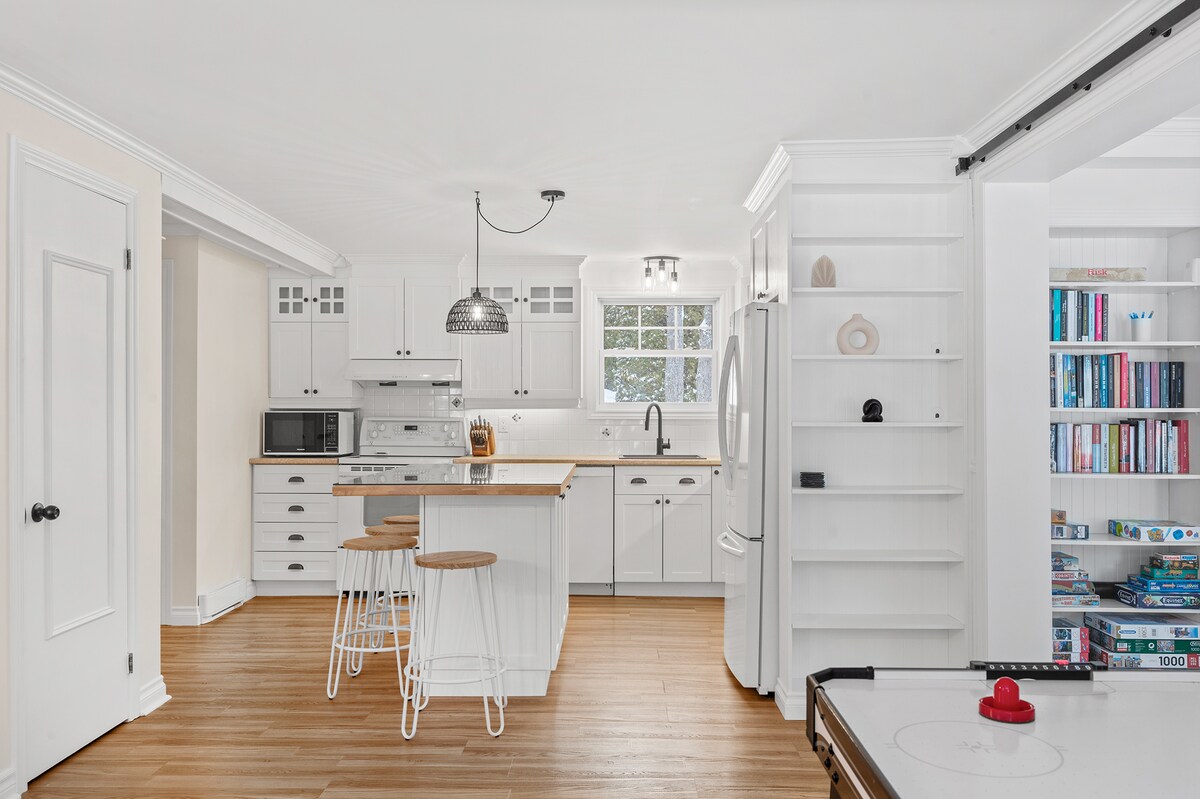 Alojamiento entero con equipamiento completo, posibilidad de 11 personas con 4 dormitorios y un sofá cama. Tarifa basada en ocupación doble, si desea habitaciones individuales se aplica un cargo adicional de 30 $ por habitación, por favor notifíquenos. En 1908, este apartamento era un hotel. En un radio de 1 km: tienda de comestibles, restaurante, gasolinera, Caisse Desjardins, campo de golf, tobogán de agua, carril bici, pista de hielo al aire libre, pista de tenis, campo de fútbol.