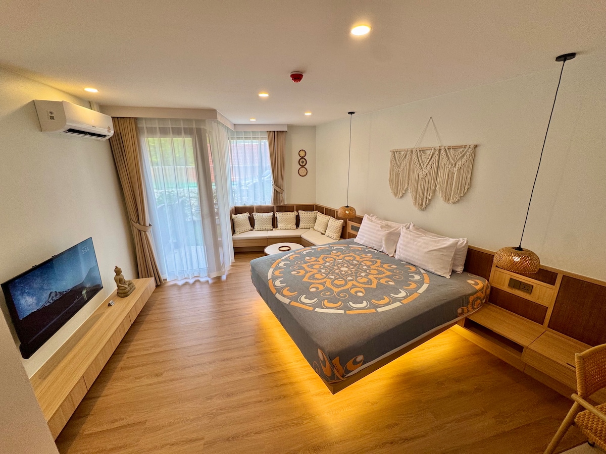 Incluye electricidad, agua, WiFi; sin depósito: este apartamento estudio está ubicado en un complejo residencial de poca altura, justo al lado de Lamai Beach Road. Está a poca distancia a pie de todos los restaurantes, mercados y tiendas de Lamai, y, por supuesto, una gran playa para nadar y relajarse está a solo 4 minutos a pie. (280 metros) El apartamento es ideal para una pareja o una pequeña familia, con un cómodo sofá cama para uno o dos niños.