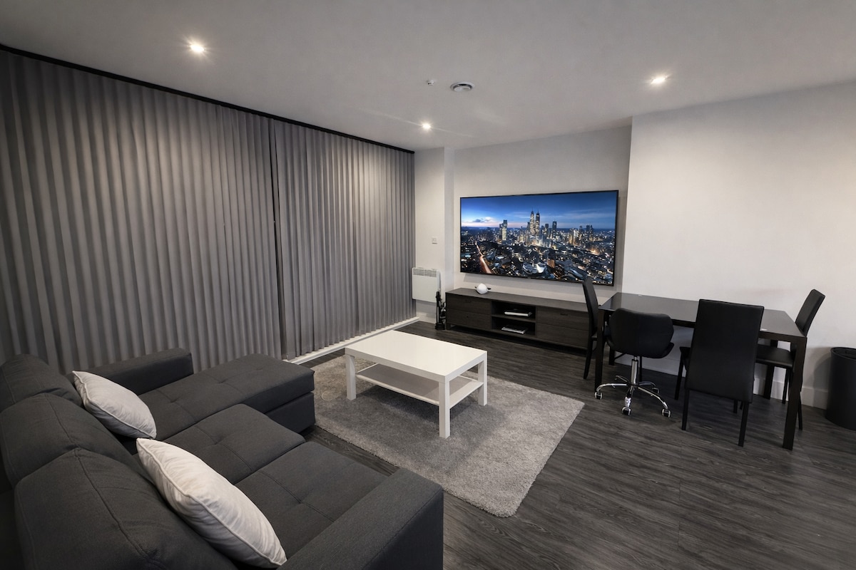 Lujoso apartamento de 2 dormitorios - Llegada las 24 horas - Aparcamiento cerrado y seguro gratuito. - Wifi súper rápido. - Netflix. - Cocina totalmente equipada - Lavadora. - Co-op Live, cruza la carretera. - El estadio Etihad cruza la carretera. - Centro Nacional de Ciclismo a 100 m. - Da la vuelta a 100 m - Supermercado Asda 24 a 100 m. - McDonald's a 50 m - Starbucks a 50 m. - Parada de tranvía a 100 m. - El centro de la ciudad a 4 paradas de tranvía. - Parque Phillips frente al apartamento.