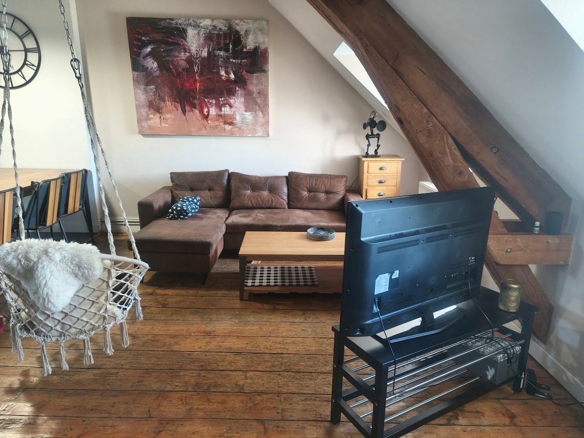 A 10 minutos de la estación de tren y autobús, la Cité de la Mer, en el centro de la ciudad y en el puerto. A tu disposición, a menos de 100 m, calles peatonales, mercado, todo tipo de tiendas y viajes por el mar. Estudio ubicado en el entrepiso (piso ANTES del PRIMERO) en un edificio con ascensor (si lo usas, presiona el botón ES (entresol en francés). Una etiqueta SYLVETTE en la puerta. Cotentin es la región ideal para practicar senderismo y practicar deportes acuáticos. Acepto perros pero no gatos (problemas para rascar)