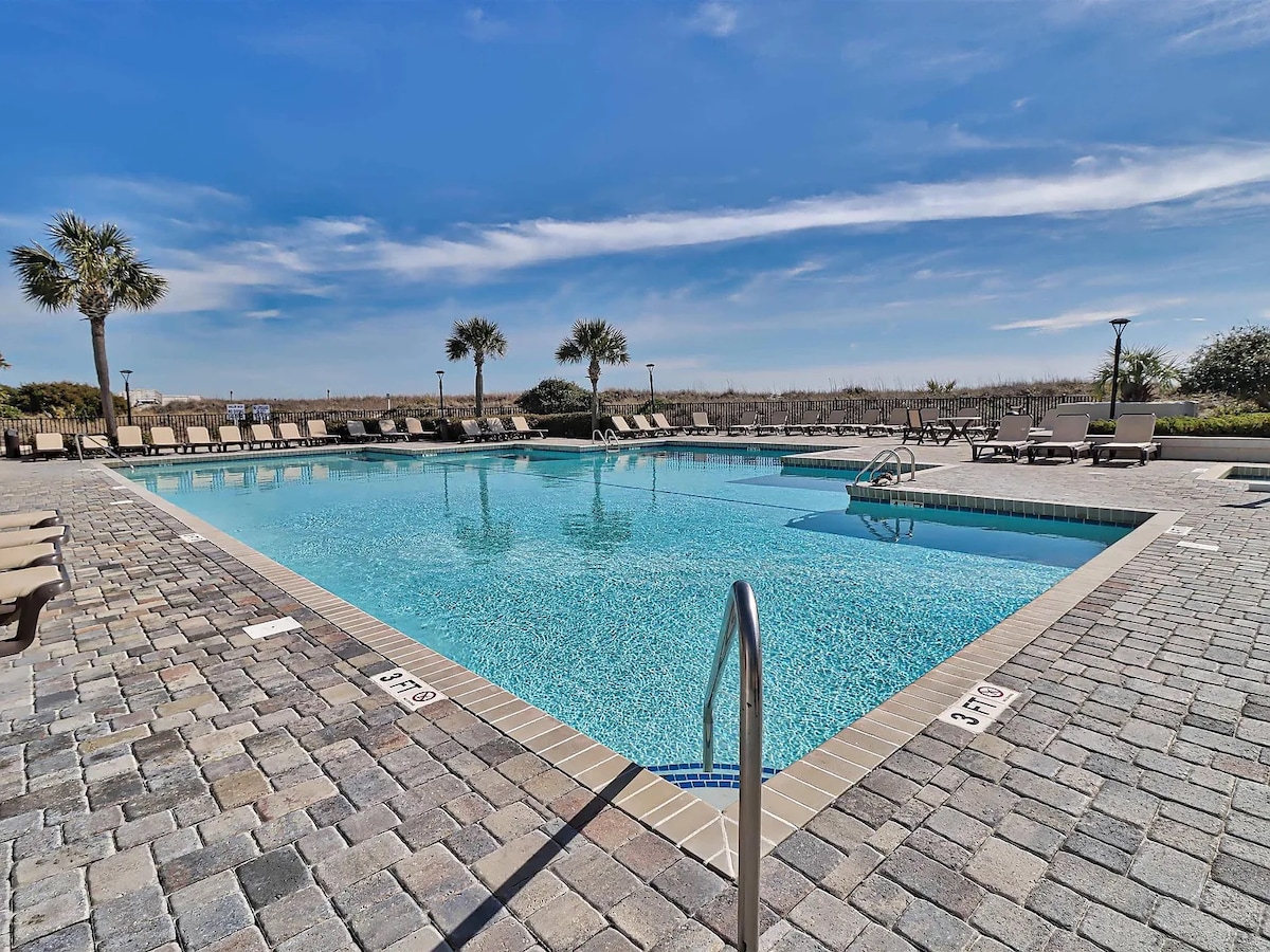 No busques más, has encontrado el lugar ideal para tus vacaciones en la playa en North Myrtle Beach, Carolina del Sur. La playa de Cherry Grove está justo al otro lado de la calle. ¡Una de las mejores playas de Carolina del Sur! Este apartamento se encuentra en una zona a la que se puede llegar caminando, cerca de un acceso a la playa, sabrosos restaurantes, tiendas únicas y emocionantes lugares de entretenimiento. Cuenta con una cama tamaño king y un sofá cama tamaño queen. ¡El balcón da a la piscina y tiene una vista al mar! ¡Reserva tu escapada de fin de semana, viaje de golf o vacaciones familiares! ¡Debes tener 25 años para reservar!